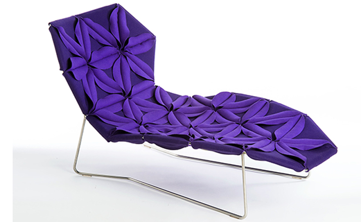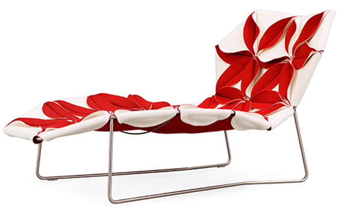 Antibodi 是 Patricia Urquiola 從一個花朵盛開的概念所創作的椅子,蜂窩式三角形花瓣串連縫製而成花朵散播在椅面上,片片花瓣的外型和多層次的材料,衍伸出豐富的圖案。