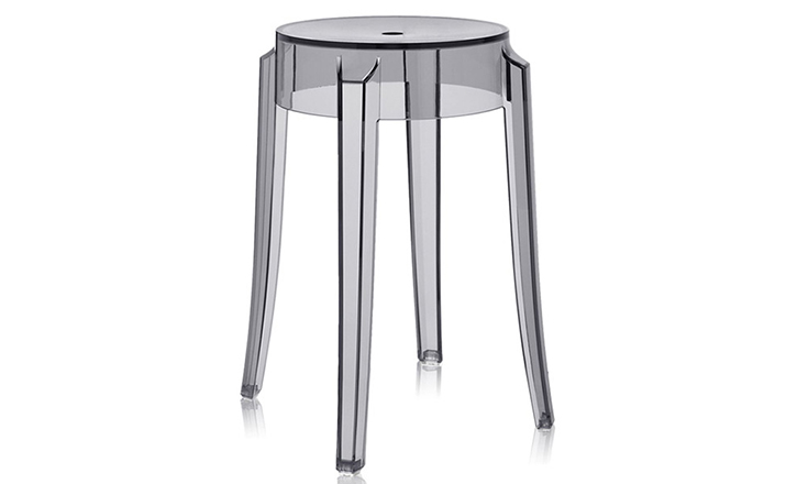 "Charles Ghost Stool(查尔斯鬼凳),由鼎鼎大名Philippe starck(菲利浦·史塔克)设计;进口高透明度工程塑料PC一体成型,简洁新潮,高净度透明材质很好的