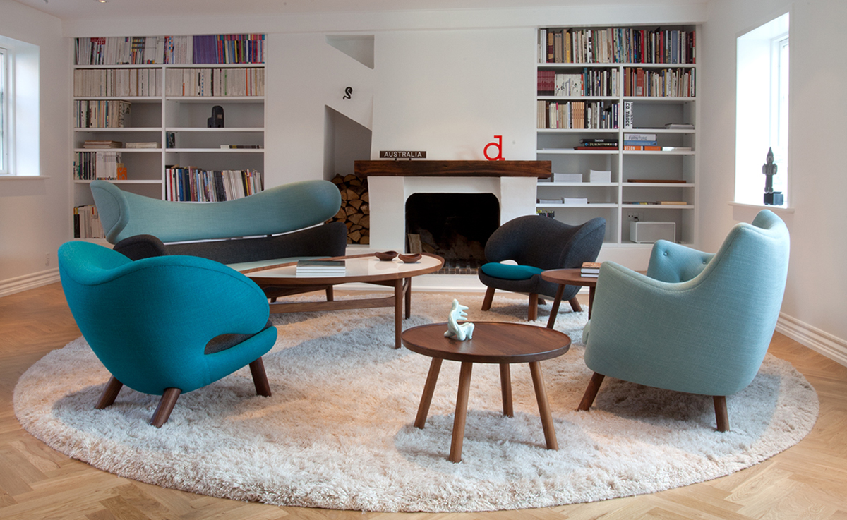 FINN JUHL设计此款沙发用在自己的家中,诗人沙发(1941)设计于位于夏洛滕隆哥本哈根北部的农村地区。Finn juhl作为一个真正的享乐主义者,他设计的家具非常舒适,使用的工艺传统并且显示材料的价值。