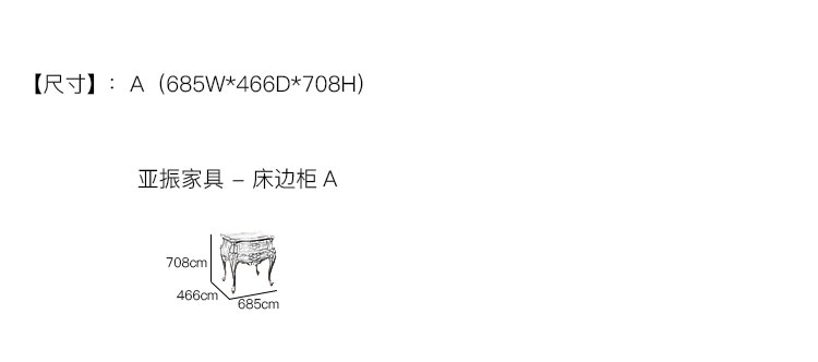 亚振家具 - 床边柜 产品尺寸/示意图