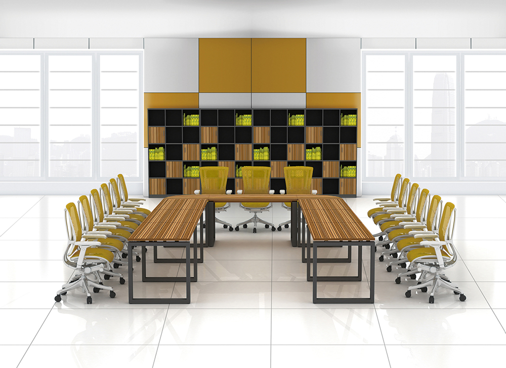 ※  系列配套产品展示,会议台钢木结构,简洁大方,颜色可相互搭配。