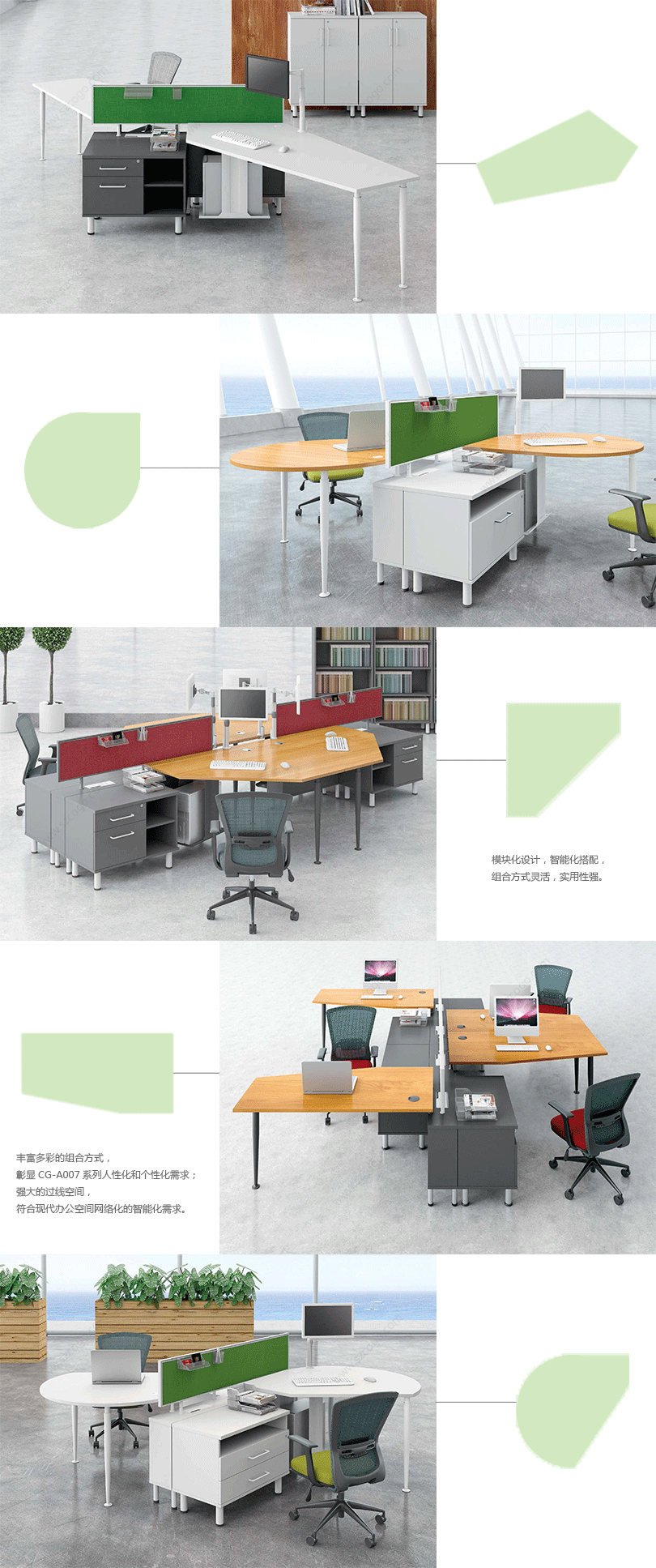 CG-A007应用而生,丰富多样的组合方式,满足员工灵感、激情、创意的需求,使他们发挥工作的高效和便捷,享受办公空间的趣味和快乐。"
