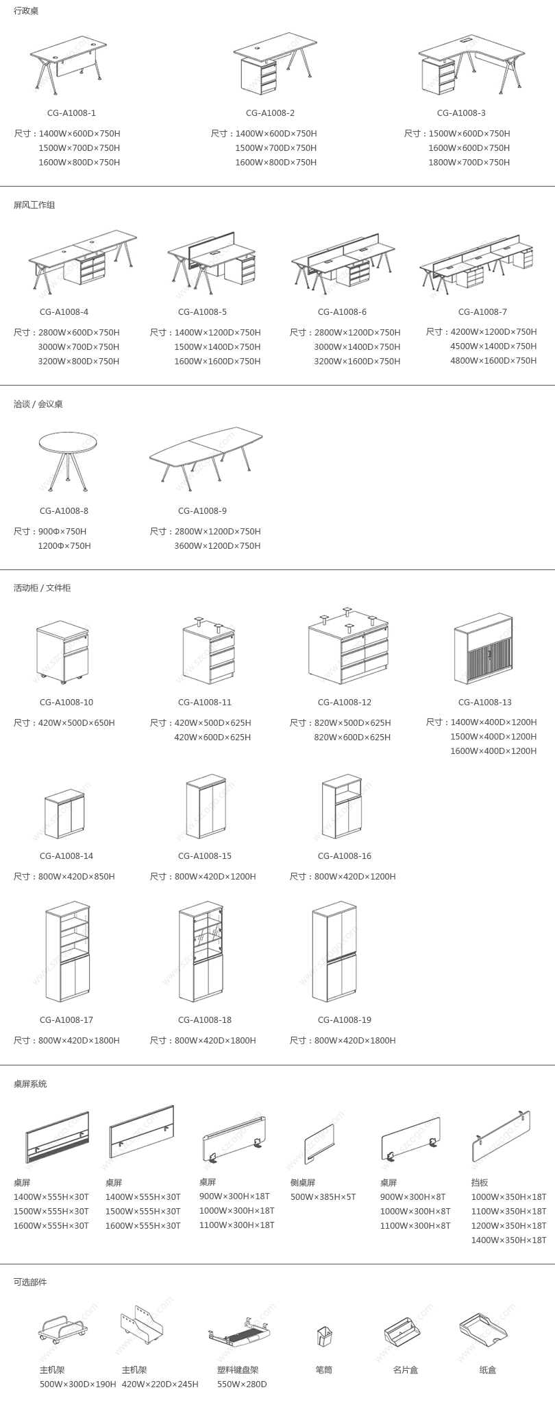 | 多种不同质感的材质共同打造CG-A008系列柔美的个性,基本模块混搭创造完美的解决方案,正满足你追求简洁,超越空间的办公环境。 |