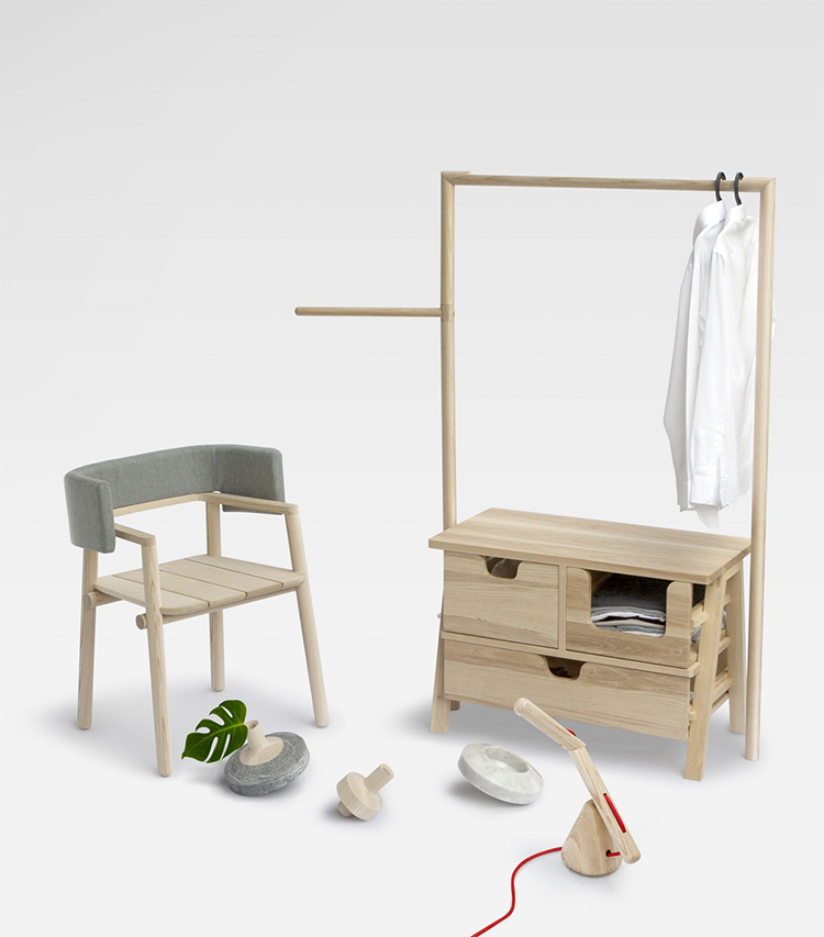 在最简单的日常行动中观察具体细节的结果是由THINKK工作室和248工作室进行的合作项目的合作项目是由传统的家具,比如"军椅","扶手椅"和"七日衣柜"来探讨这些特定的动作,这是对本周的个性化着装选择。