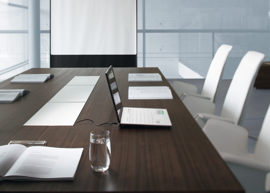 这是EOOS的新总部和会议项目设计团队对该产品强大的美学诉求,这个模型散发着成熟和信任的风格。无论是作为一个单独的会议桌,还是作为一个单独设计的大型会议系统,架构总是保持其清晰性。昂贵的材料创造了一种即时的视觉印象:海洋胡桃木单板和Corian。白色区域隐藏着集成线盒,衔接到各种能源和设备。