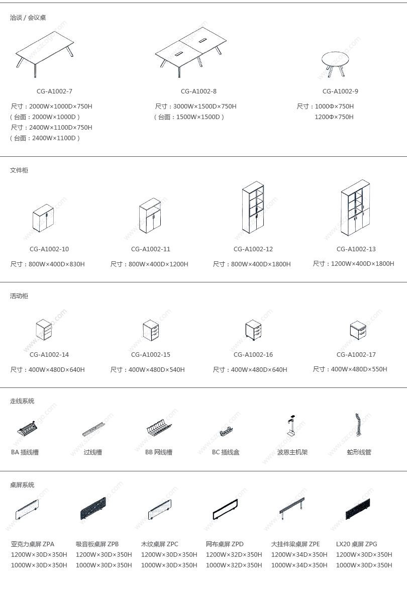 2、整齐划一、人性方便的桌面铝合金过线系统; |