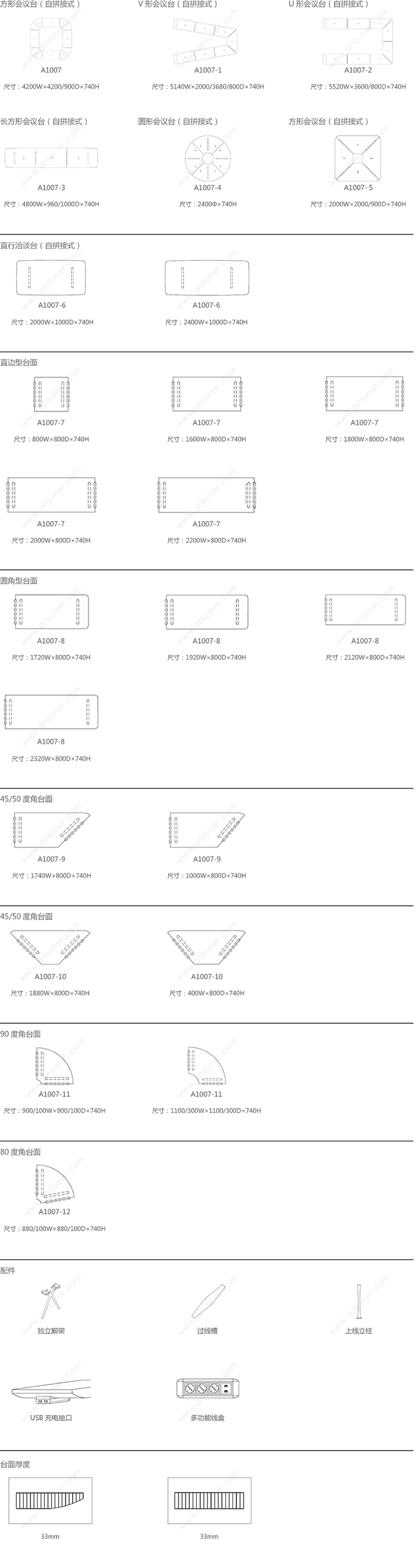 会议台|实木会议台|办公家具|设计师家具|ConferenceX-组合会议台