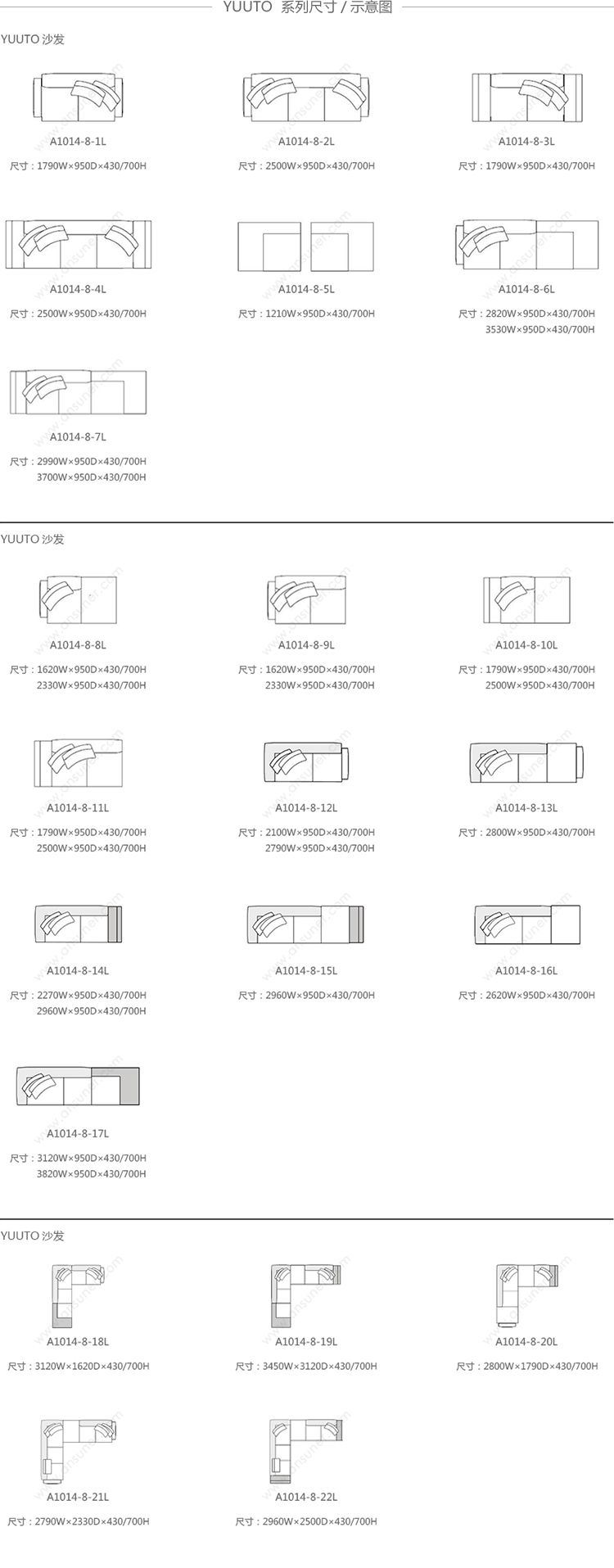 2500W*950D*430/700H
