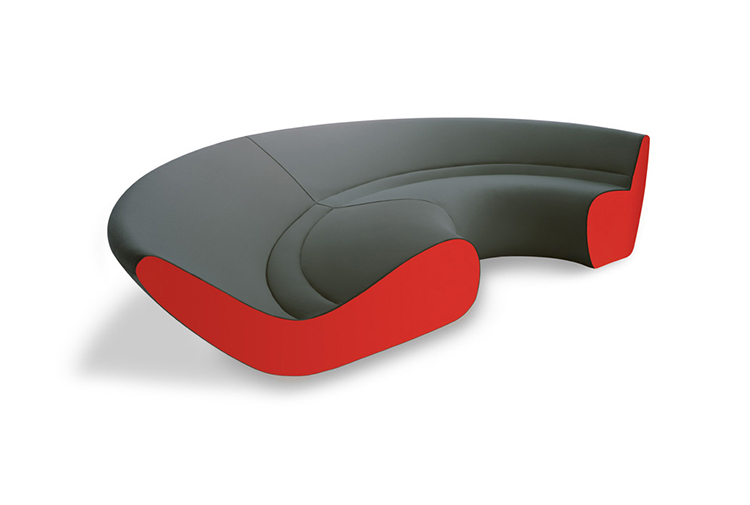 圆椅有四个沙发组成,其中两个沙发可以组成一个半圆,所有沙发都是弧形结构的。背部和休息区的斜率弥补从直立坐着到躺着放松的完整流程。四个沙发其他数据皆有不同只有高度是唯一不变。