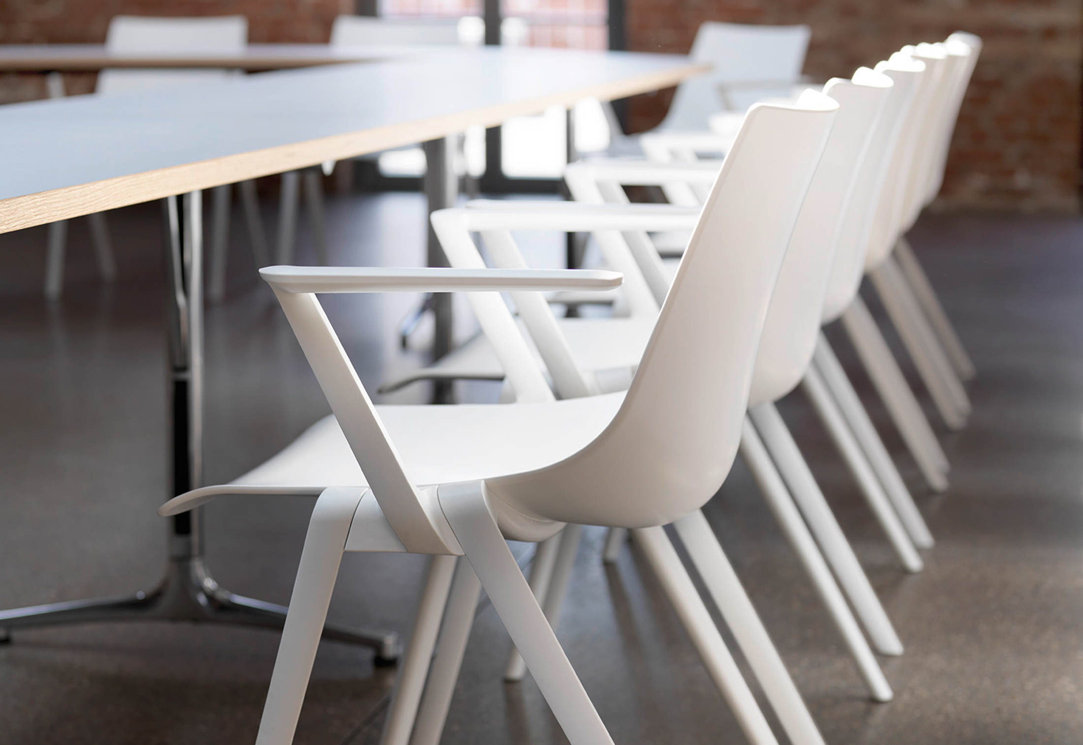 无论这把椅子是否有扶手,具有独特三维座椅外壳的框架结构看起来都是无缝的。