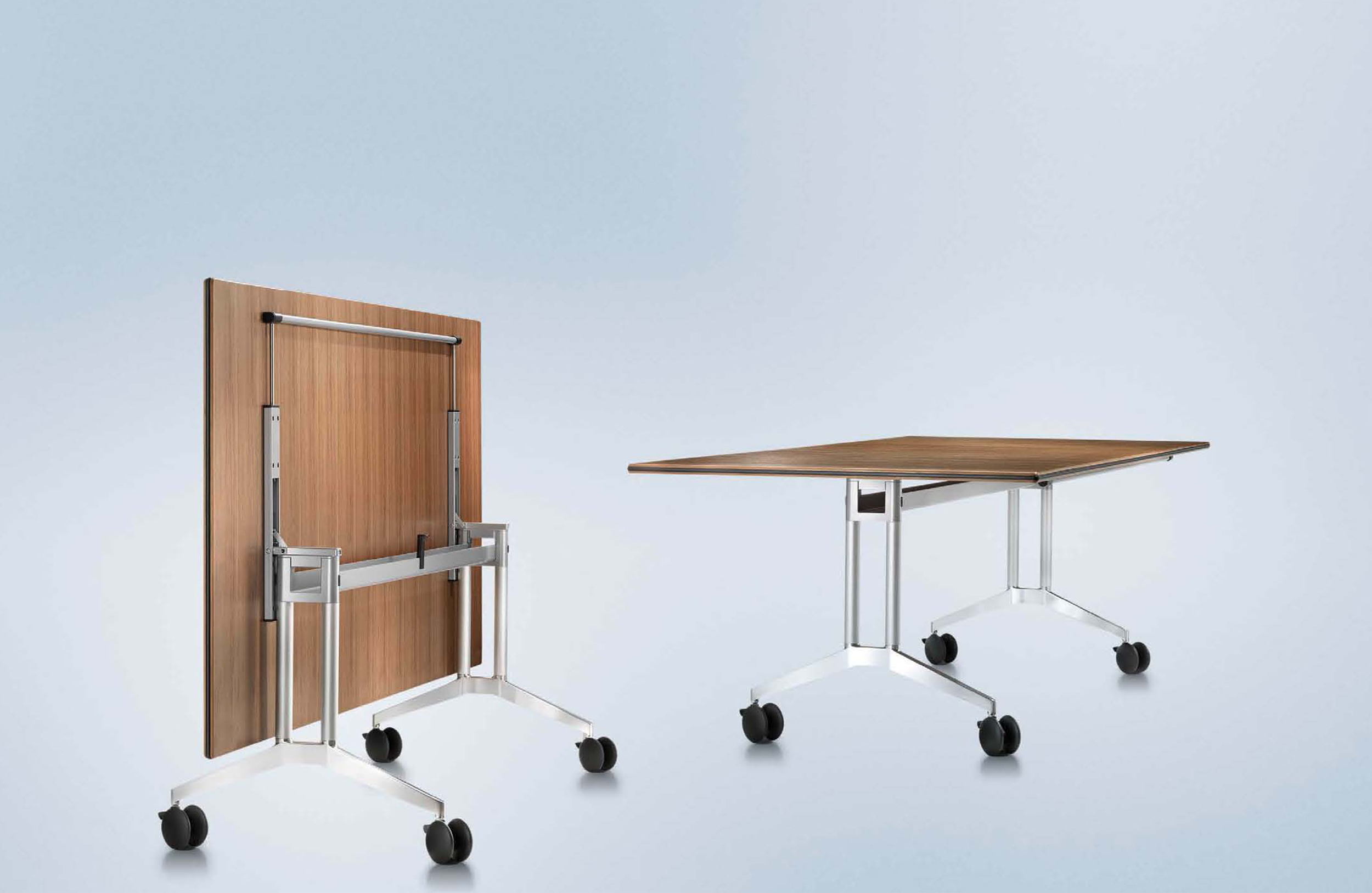 这张桌子在节约空间方面有着出色的设计。分工合作、灵活的团队合作以及自由职业者与项目团队的短期整合已经成为我们日常工作的一个组成部分。也就是说,这是在工作环境必须体现出来的时候了。这就是为什么我们设计了一张能容纳个人或者八人组的会议表。它可以简单地与其他个人桌子连接起来,形成一个会议桌,并且可以在不需要的时候立即折叠起来,放置在房间的一侧。因此,每个人都可以像环境所允许的那样富有创造力。