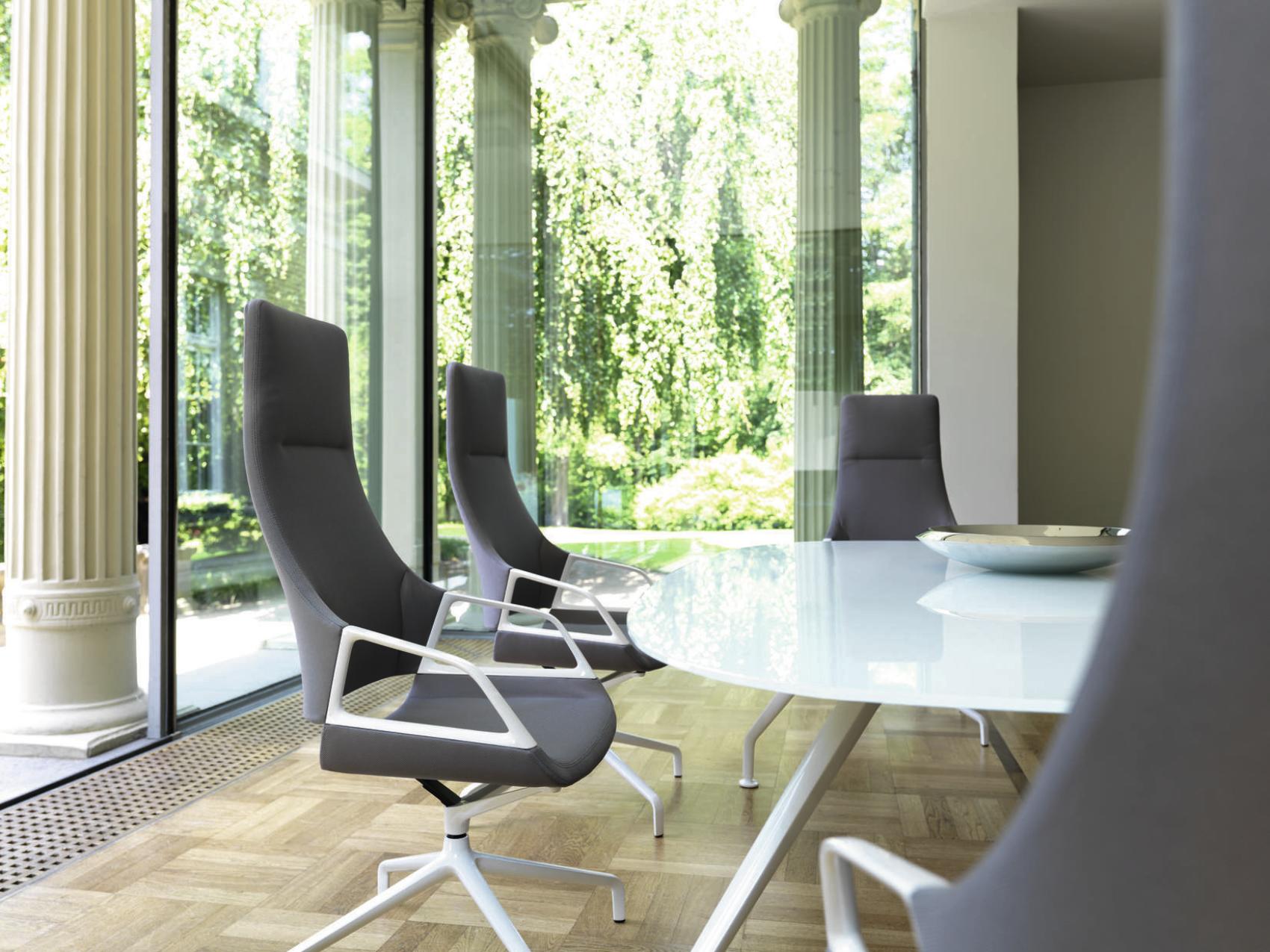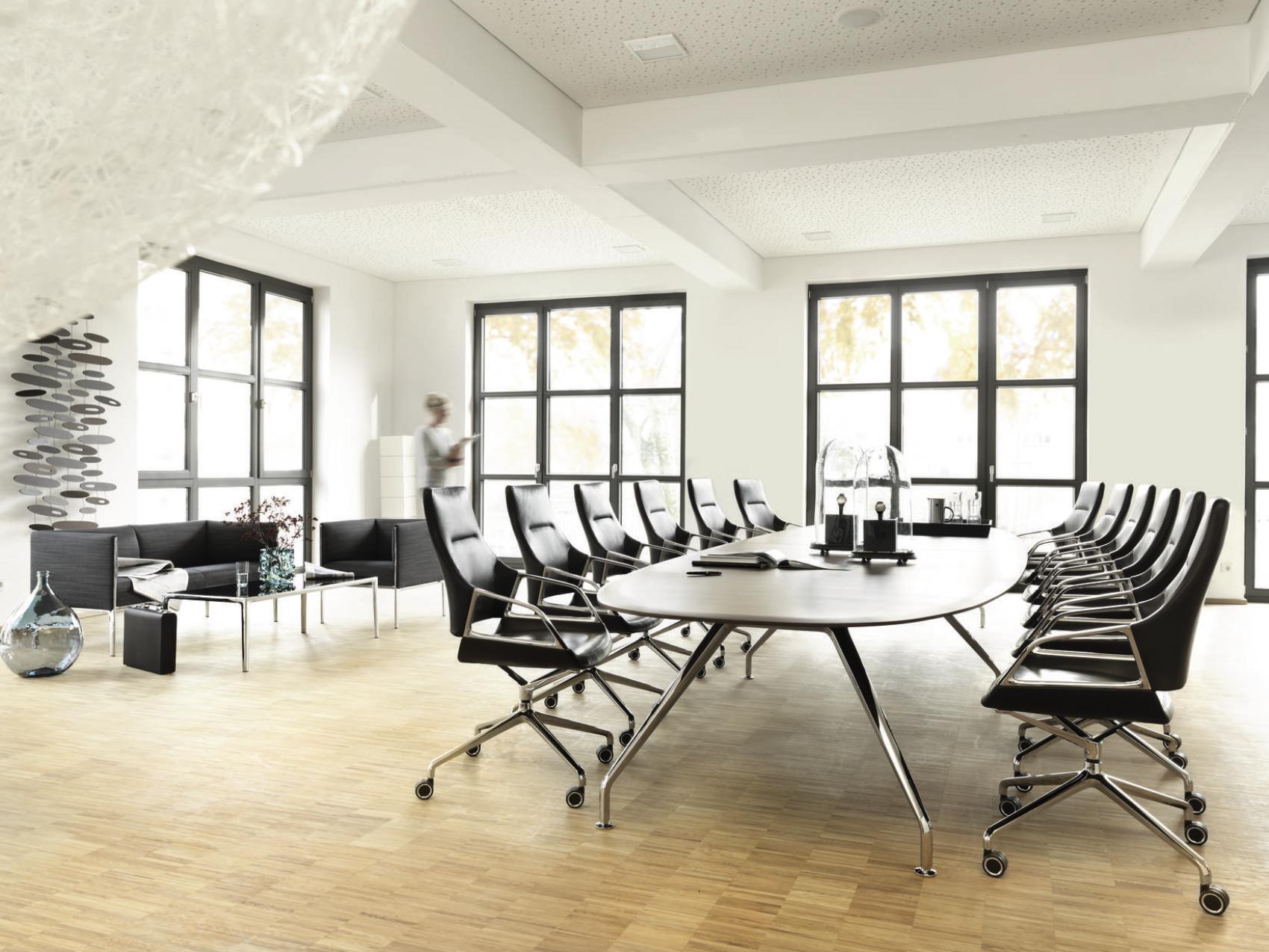 他的Graph反映了图表会议椅的主要设计特点。椅子的足部、扶手都可以在Graph会议桌上无缝反映出来。在桌子的框架上,铝的框架与倾斜的压铸铝腿和它们弯曲和扁平的外观相呼应。因此,在工作台框架上,灯线始终如一地出现,从而使框架具有无缝外观。巨大的跨度也给人留下了一种优雅的印象,引力似乎在那里几乎停滞了。这个ef fect是由不对称曲线的表边和表的圆角来增强的。