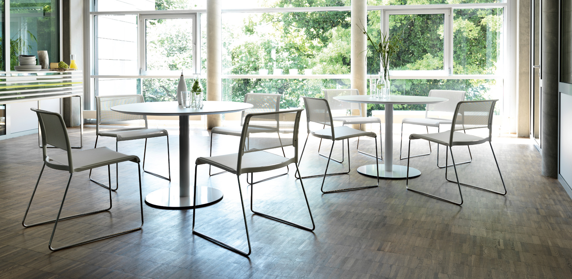 除了skid和转角座椅、工作台和酒吧凳子外,还提供了圆形和方形的矮桌、高台和高台座的桌子,以及双座的长方形桌子。对于专业用途的非正式区域来说,它的时尚和透明的外观和感觉是很理想的:销售室、顾客支持和等候区、小酒馆和自助餐厅,或者是在家里的桌子和餐厅。由于座椅的抗菌织物和容易护理的、结实的桌面,对水疗和保健领域来说是极好的选择。不管布置的是什么,家具都能给房间提供一种轻松的,轻松的吸引人的方式来促进非正式的谈话。它既具有吸引力又很舒适,同时具有复杂的功能。