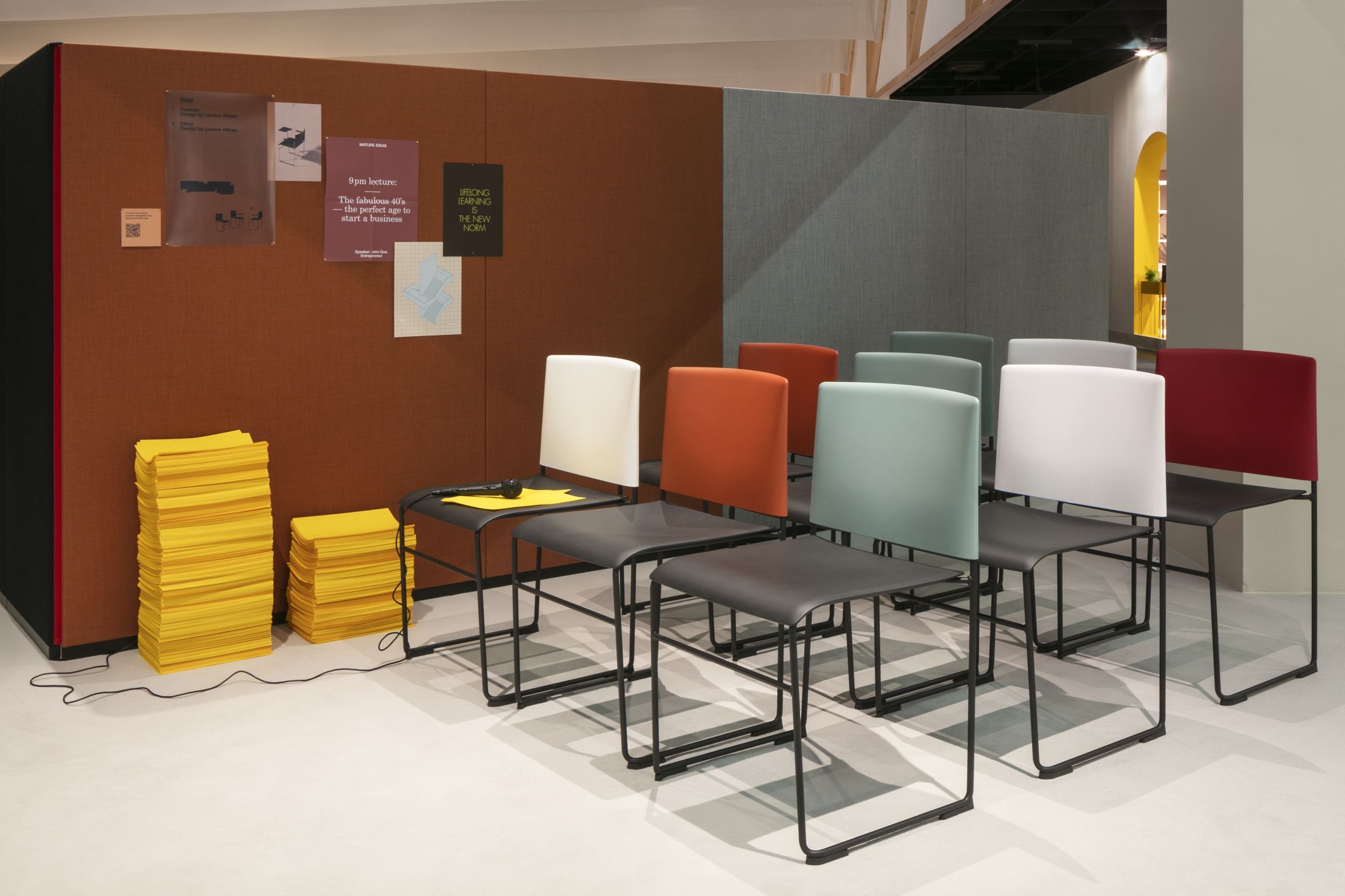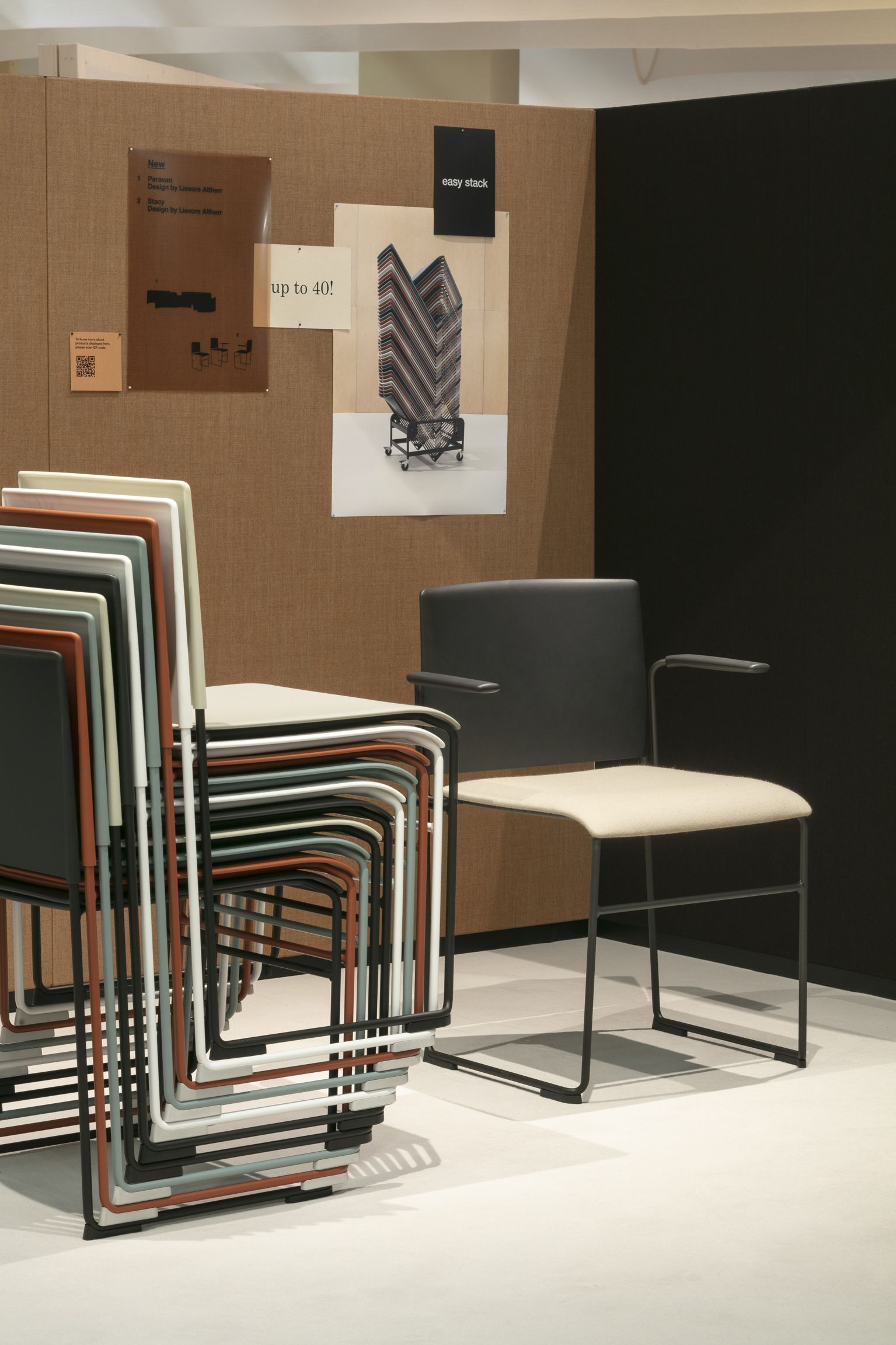 Stacy系列融合了功能与低调的优雅。基本形式重量仅为5.5千克。它可以堆放多达40把椅子,便于在大学,会议室,礼堂,教堂或公共场所等临时和即兴座位环境中运输。雪橇底座有镀铬或涂有四种不同颜色,有或没有扶手;外壳采用聚丙烯制成,带软垫座椅或全软垫或防火塑料饰面。或者通过组合不同的座椅和靠背饰面选项来创建定制材料配对:monocolor,彩色座椅和靠背,或带有彩色背部的黑色座椅。一套附件选项,包括左侧或右侧可拆卸书写板,连接系统,行间隔器,编号系统和用于堆叠的手推车,增强了Stacy的功能,而舒适的瀑布座椅形状和柔和的倾斜靠背等精致细节使其非常实用主持任何基本的东西。