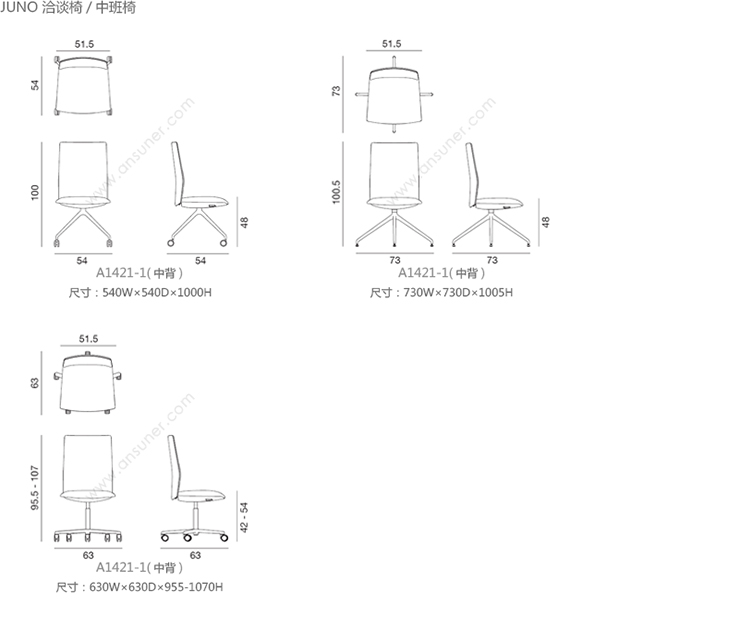 Kinesit 会议椅/中班椅 系列尺寸/示意图