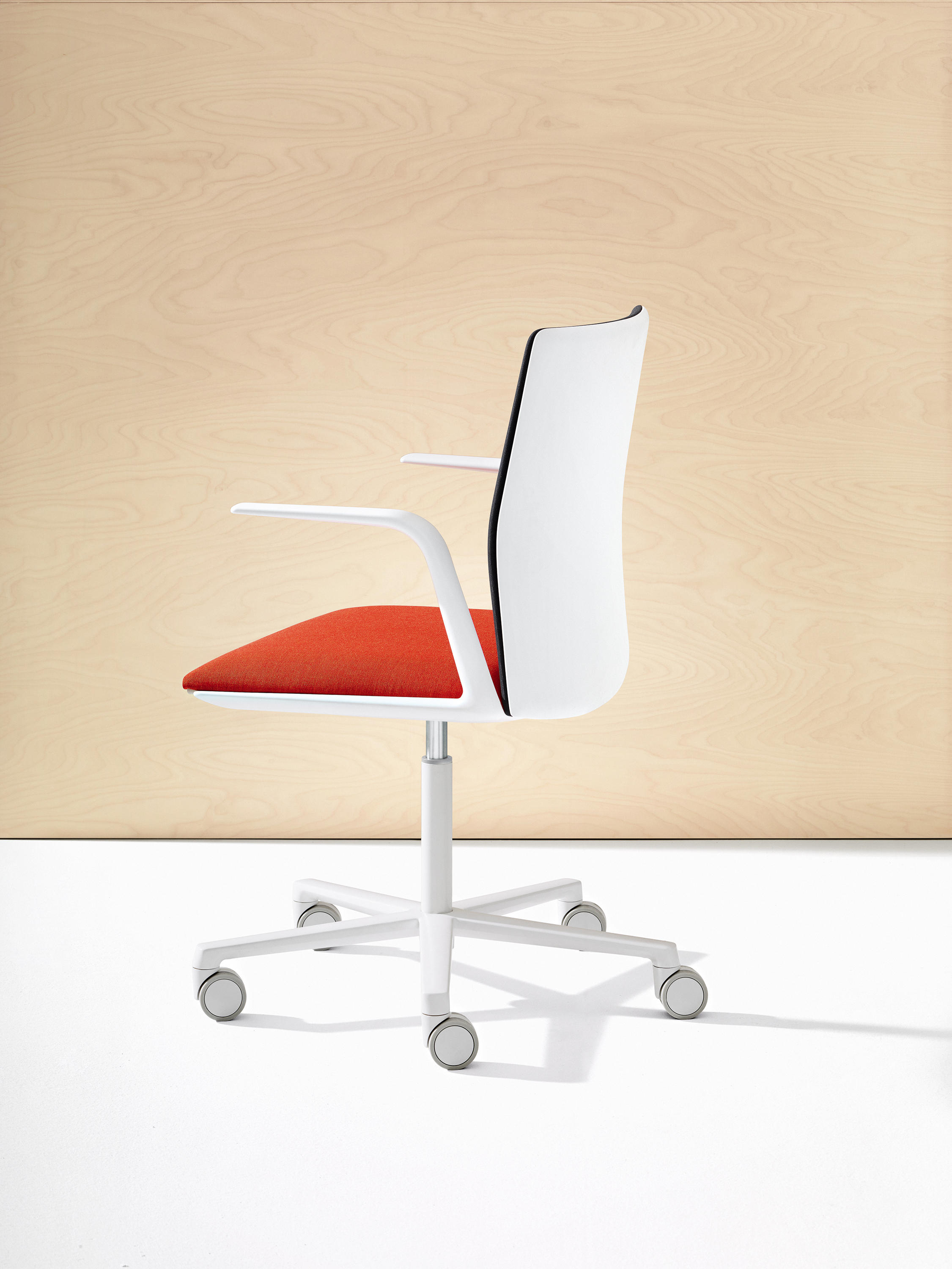 Kinesit Chair有三种座椅靠背高度和一系列底座,有或没有扶手,可用于各种可能性。 Arper全系列的颜色,纹理和色调,或标准网眼覆盖物中的各种装饰面料和皮革,使Kinesit Chair可以根据不同的设计应用和室内空间进行定制。