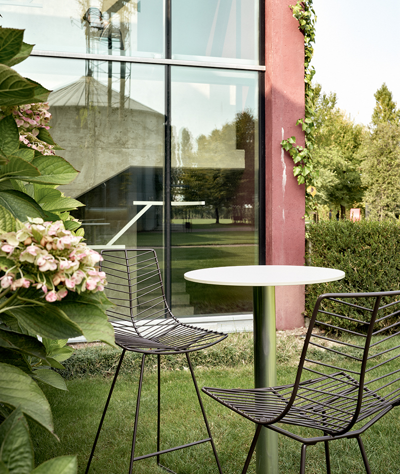 基座有三脚或四脚。全部采用白色,摩卡或绿色涂漆钢材制成。防水HPL上衣有灰色可供选择。