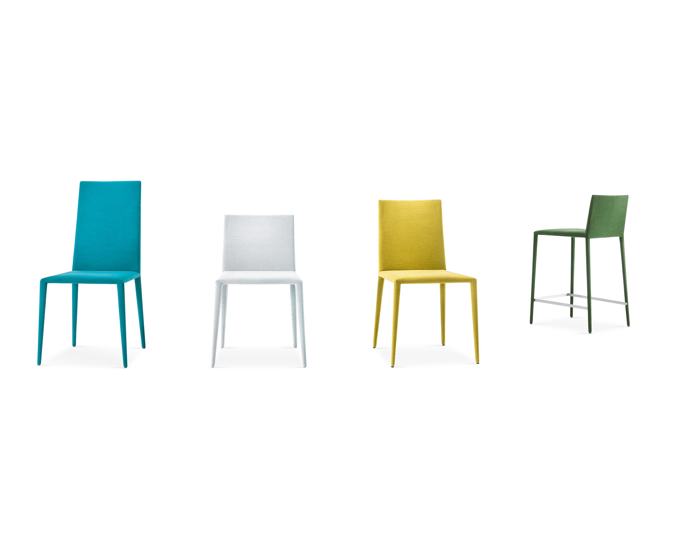 Norma有椅背版本,有三个后背高度,凳子有硬皮,织物或皮革内饰盖。涂漆,镀铬和贴面金属支脚延长了软垫椅子和凳子版本的耐用性,以供合同使用。还提供特殊的可堆叠版本,包括室内装潢和中高靠背。