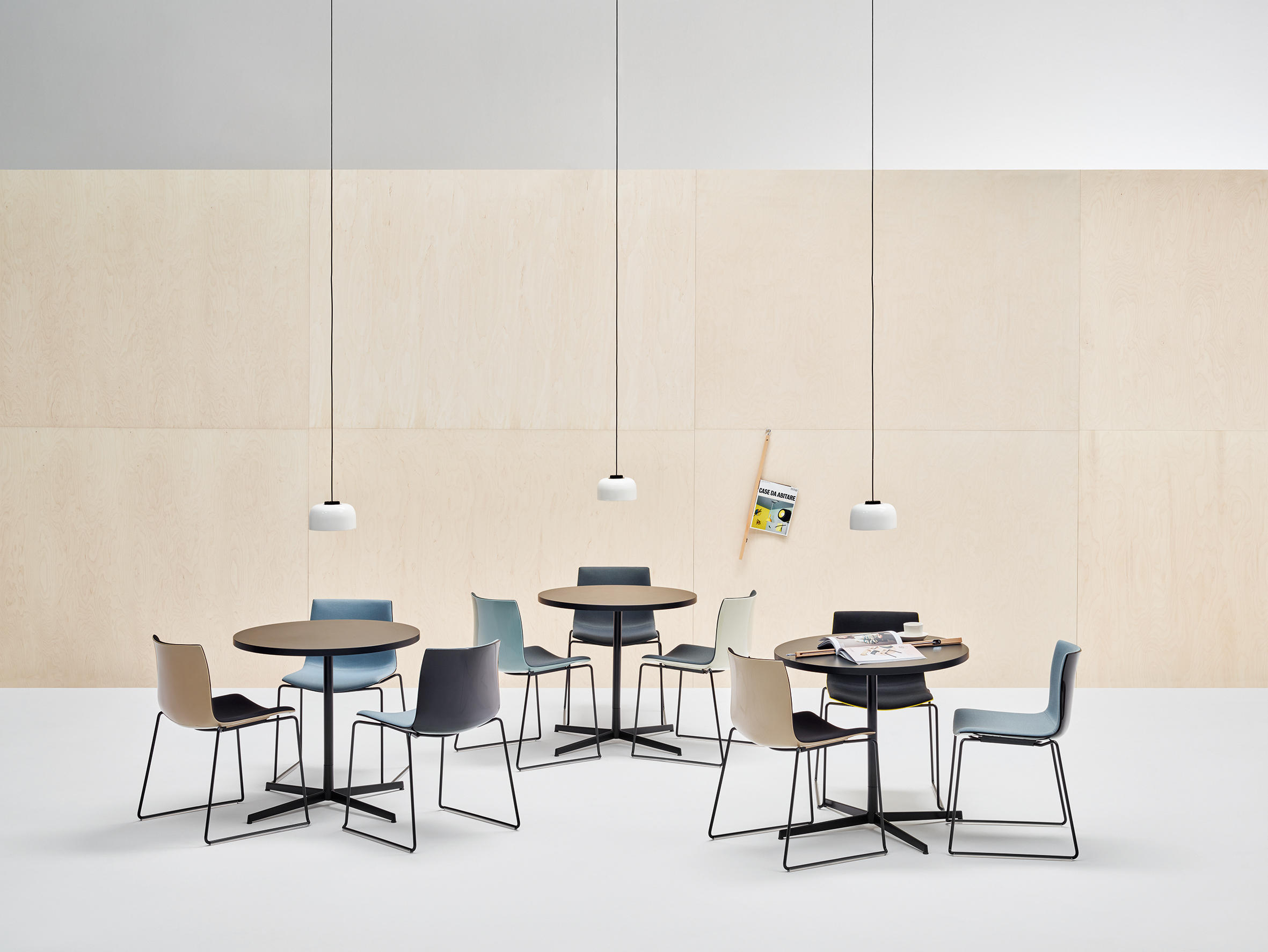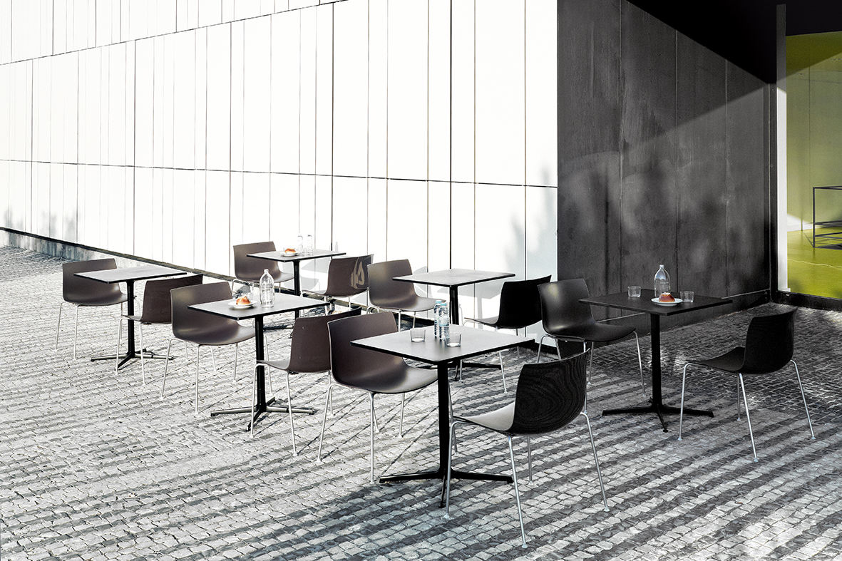 Wim加入Arper作为一系列表格,旨在完成Arper座位选项的句子。 耐用的材料,如铝,高压层压板和木材,形成坚固的结构,适合的形状有圆形(从Ø60厘米开始),方形(从60 X 60厘米开始)或矩形(从70X140厘米开始)。 铝质十字架底座支撑轮廓的完整性,创造出一种形式,可以在餐馆或酒吧等团体环境中重复使用,或隔离用于家居,功能和美感的结合至关重要。