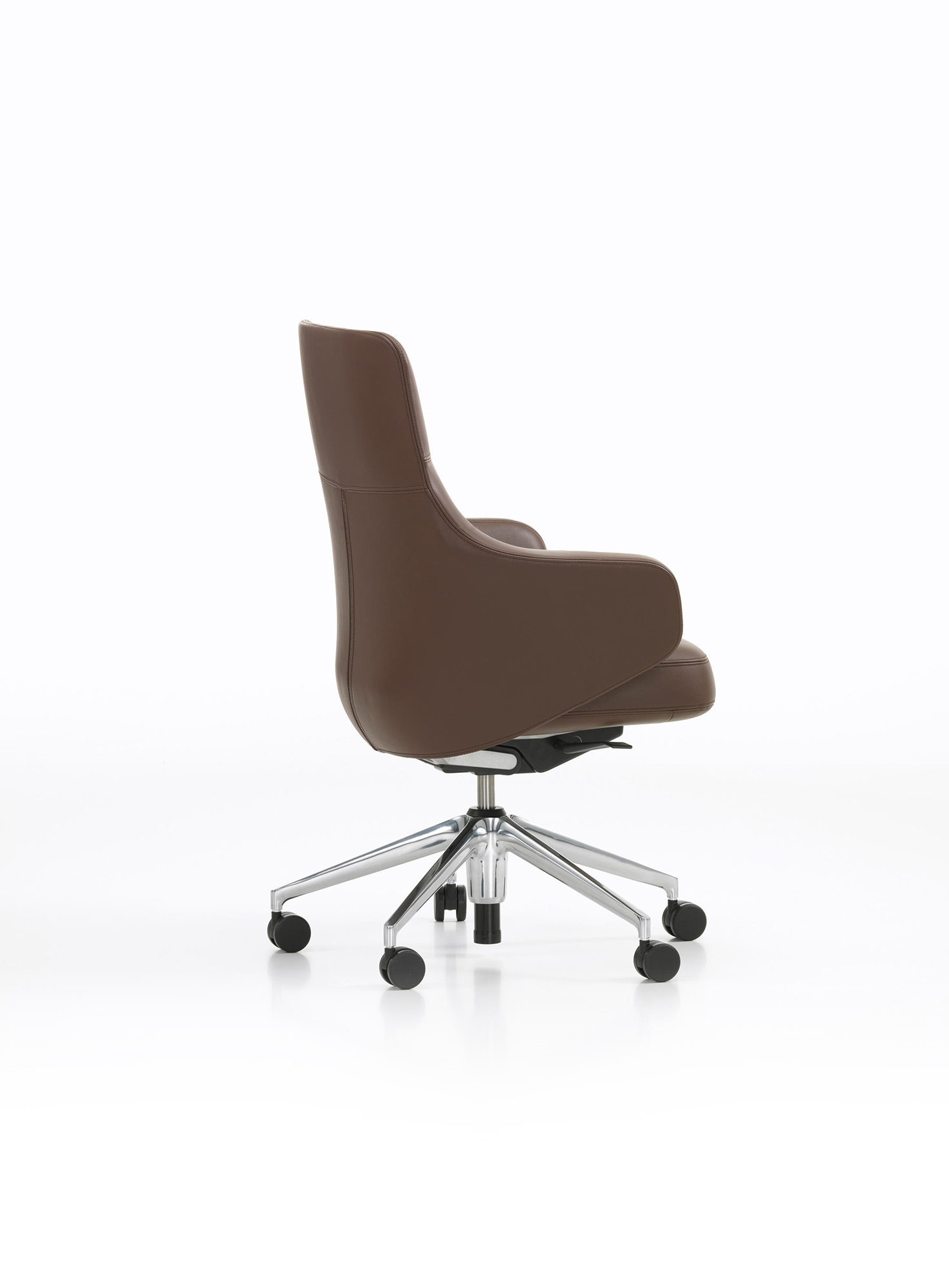 Grand Executive椅子结合了Grand Repos休闲椅的优雅,这是由Antonio Citterio为Vitra Home Collection设计的,具有现代办公椅的功能。 Grand Executive椅子的尊贵光环与时尚美感相得益彰。采用优质皮革制成,柔软的软垫内饰提供极致的舒适感。装饰性接缝凸显了椅子的手工细节,并勾勒出其体积结构。 FlowMotion机制可以适应个人用户,以确保每个坐姿的同步舒适度。 Grand Executive Highback模型配有可调节颈垫。