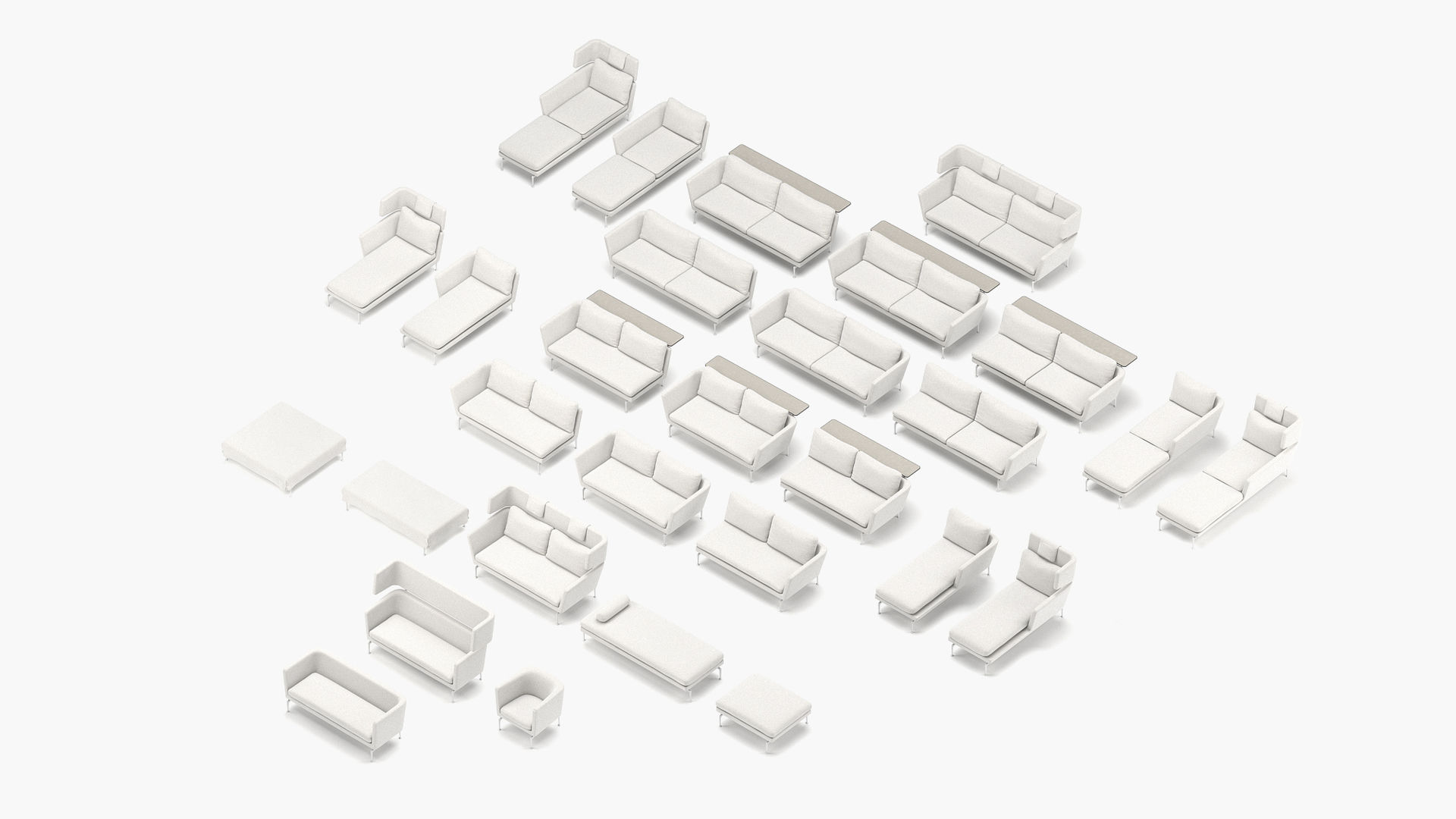 The basic elements of the Suita system can be used individually, or they can be mixed and matched to suite all kinds of living spaces and furnishing needs. The elegant frames (offered in your choice of polished, black-coated or white-coated aluminum) together with the choice of fabric or leather covers offer individuality in terms of comfort and appearance.