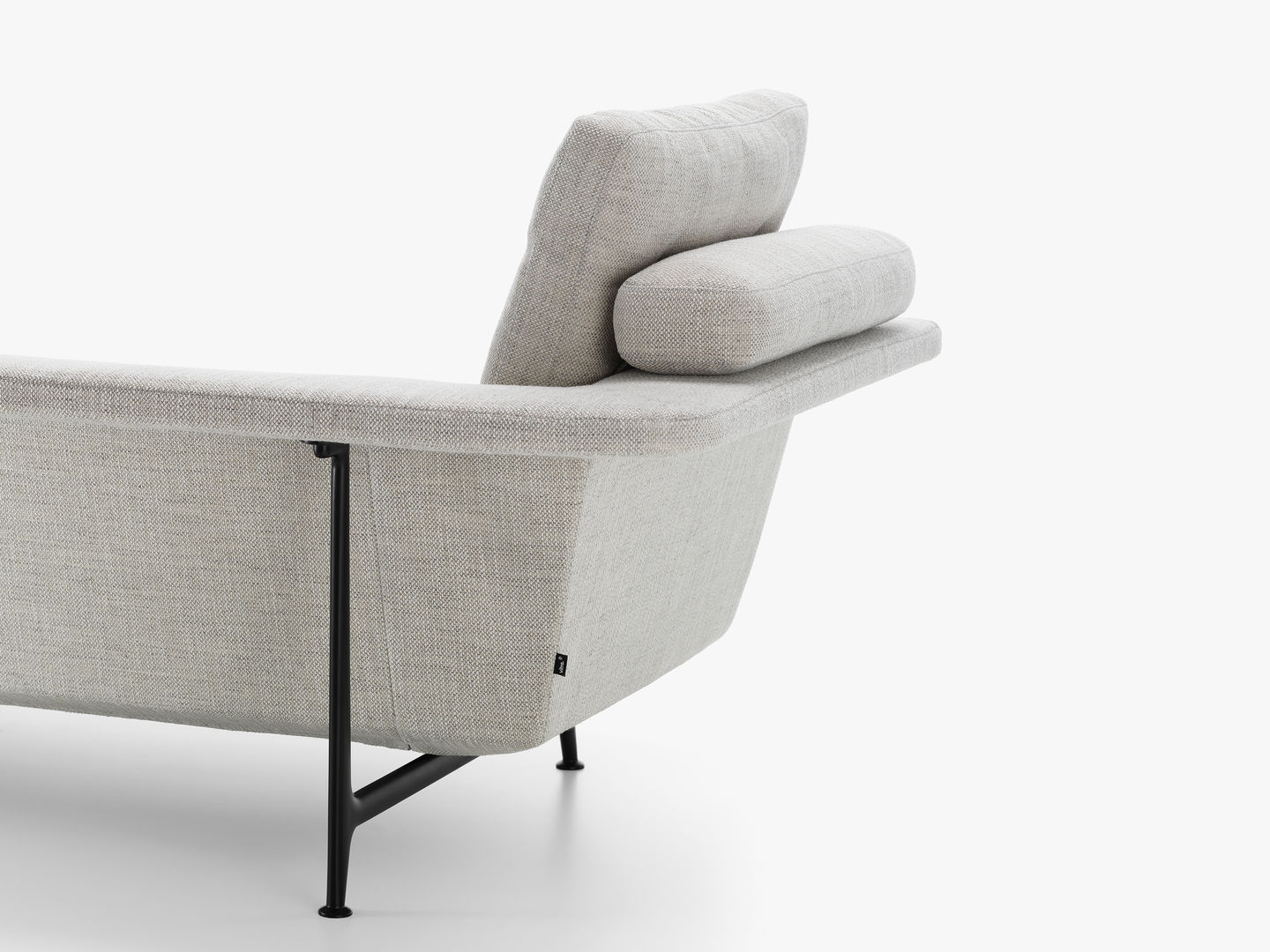 宽大的线条和几何形状的宽大沙发元素营造出宽敞的坐姿或斜倚平台。尽管比例广泛,Grand Sofa仍然拥有优雅的轮廓:纤细的织物覆盖的身体呈双重角度,形成一个层叠式座椅,靠背和后部壁架。车身在座椅表面的每个端部下方的两个点处以及靠背后面由桥状铝基座框架支撑,使得沙发看起来漂浮在地板上方。座椅元素两侧开放,强调GrandSofà的水平面。消费者可以选择全长靠背或缩短版本。这使得可以生产具有间隙和视点的大型座椅布置 - 具有几乎地形特征的沙发景观,传达轻盈和可变性的表达。