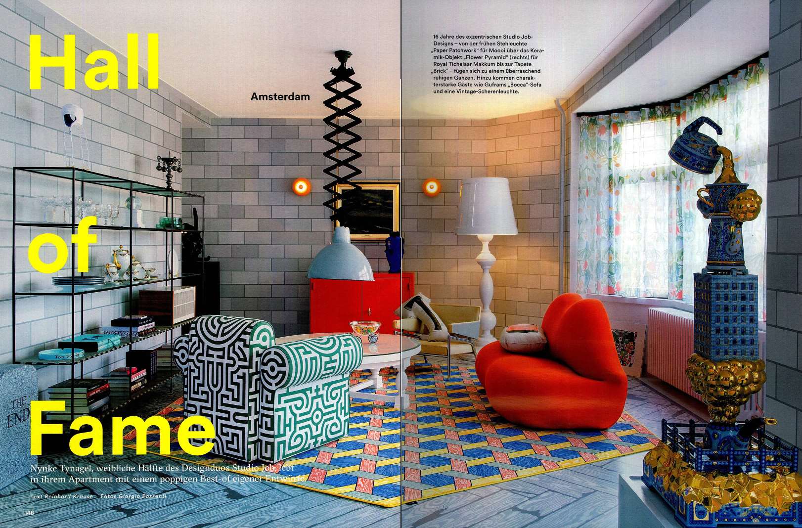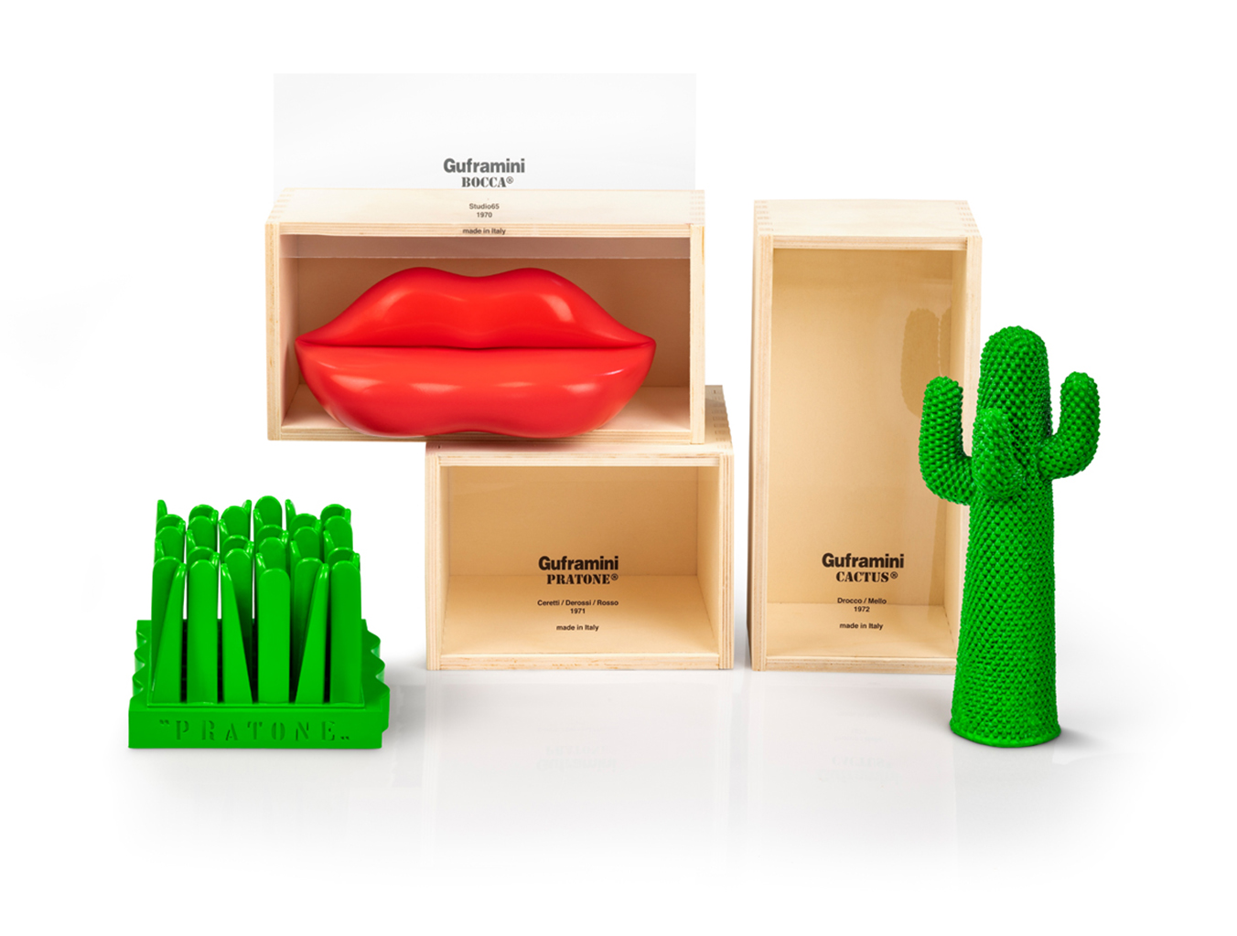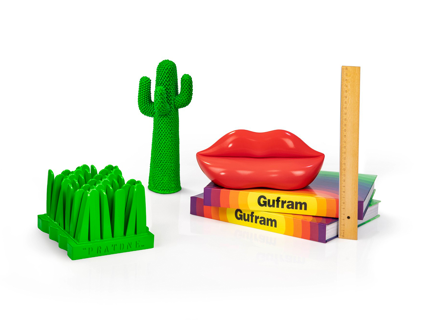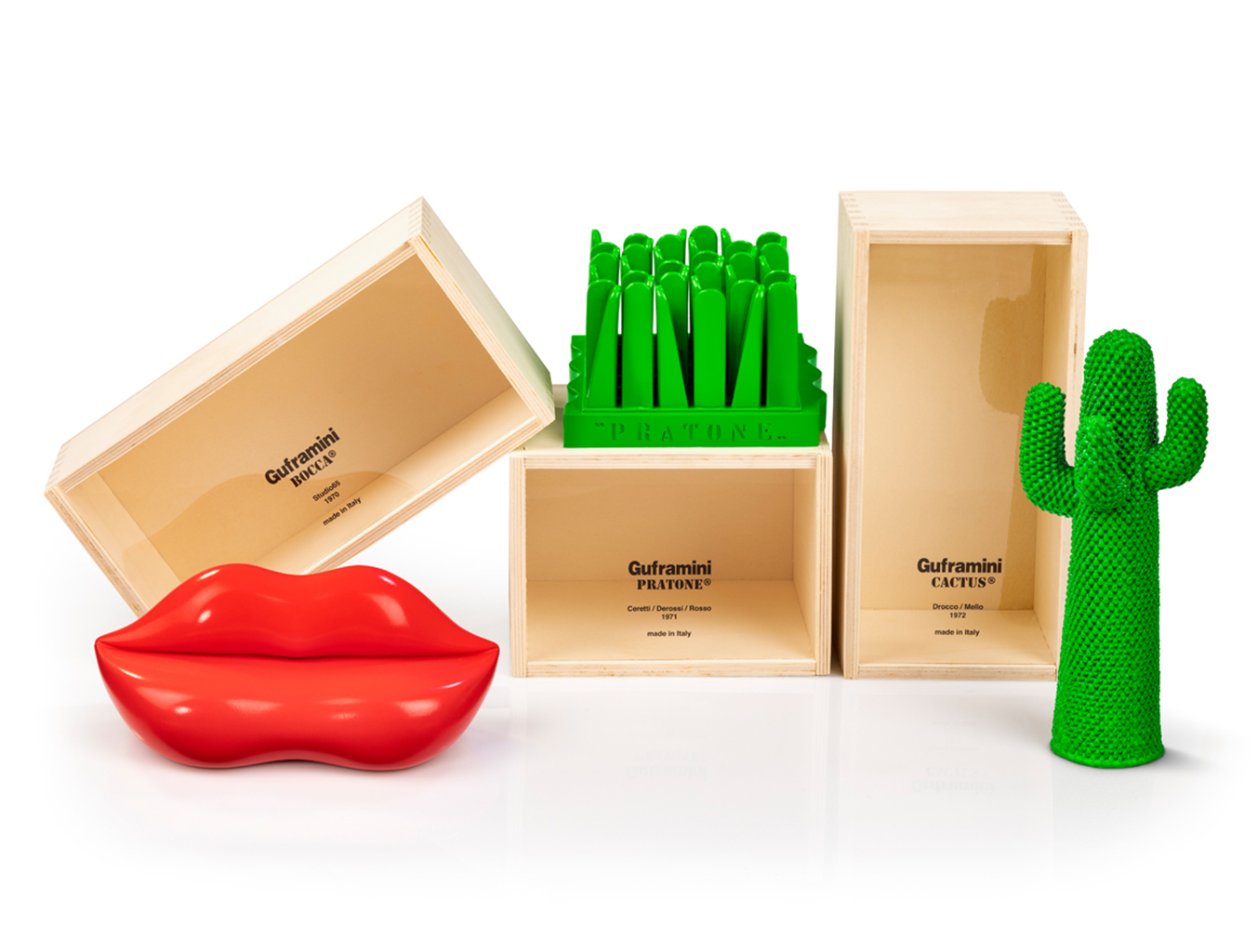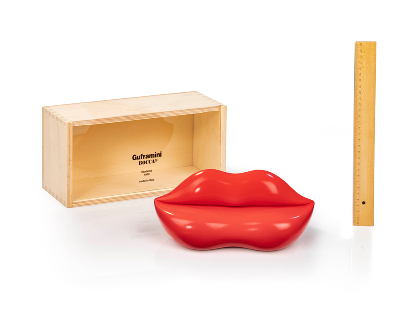 冷膨胀聚氨酯的使用使得传统的家具建造方法变得多余。 “Studio 65”系列的家具设计中突出了一系列雕塑家具,因为它彻底利用了这种新材料所允许的设计自由。这种家具的风格体现了20世纪60年代的图像艺术的特征:Claes Oldenburg的柔化,漫画和商业艺术中的天真风格,或者20世纪60年代物品所呈现的巨大的,令人陶醉的尺寸。除了一个带柱的希腊神庙形状的扶手椅和作为儿童游戏系统的巴比伦神社外,Studio 65对“激进设计”的贡献包括一个女人嘴巴形状的沙发。副标题Studio 65给了它的沙发Bocca:»别名嘴唇,别名Marylin«,是对这种设计及其象征意义的灵感的参考。工作室65在这种背景下引用了萨尔瓦多·达利(SalvadorDalí)的设计理念,其背景如下:»具有象征功能的物体不留任何正式考虑的空间。它们的特征仅在于每个人对爱的看法,并且超越任何形状的概念。