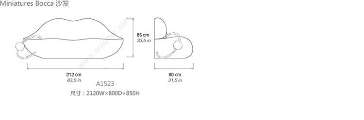 Miniatures Bocca 沙发 系列尺寸/示意图
