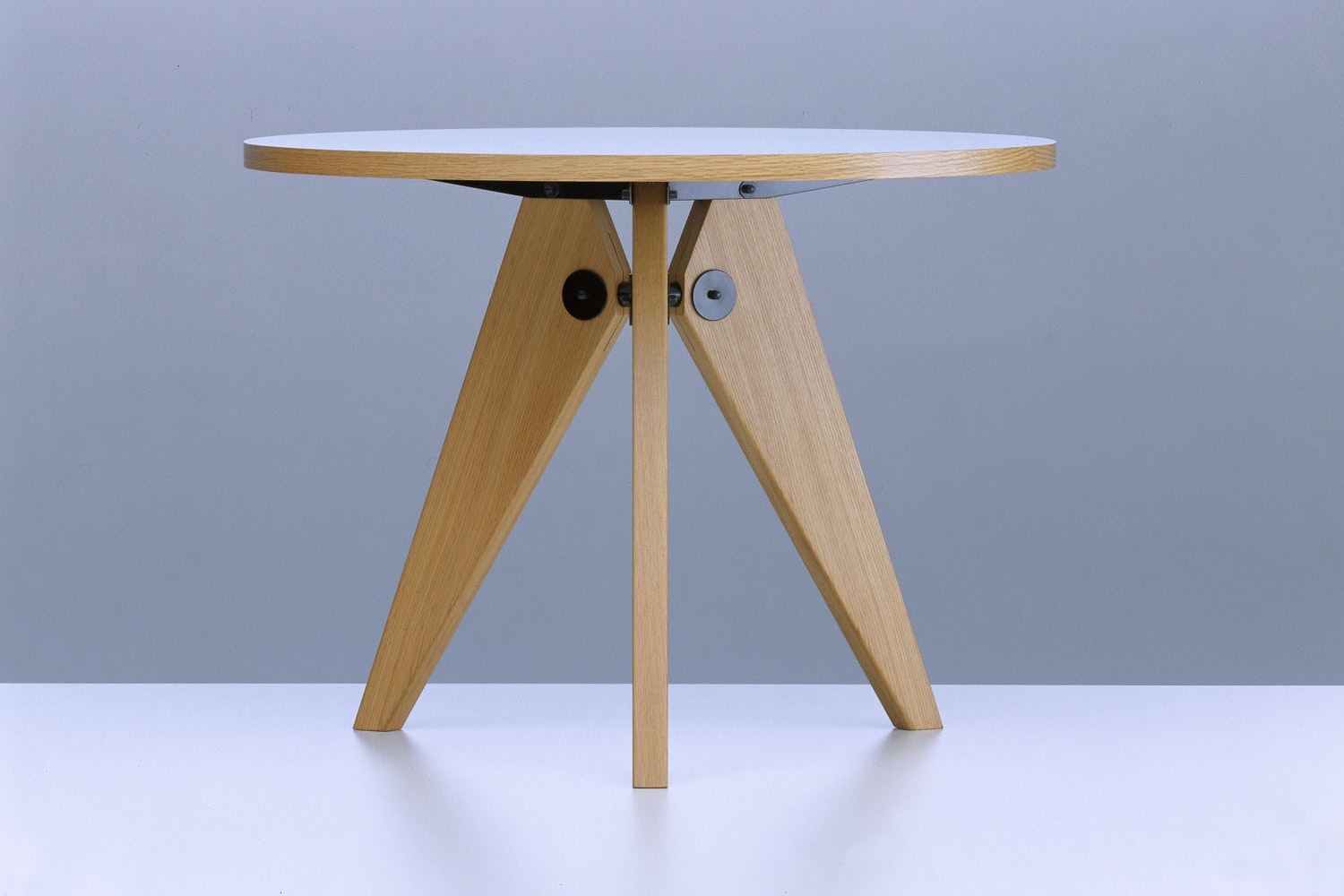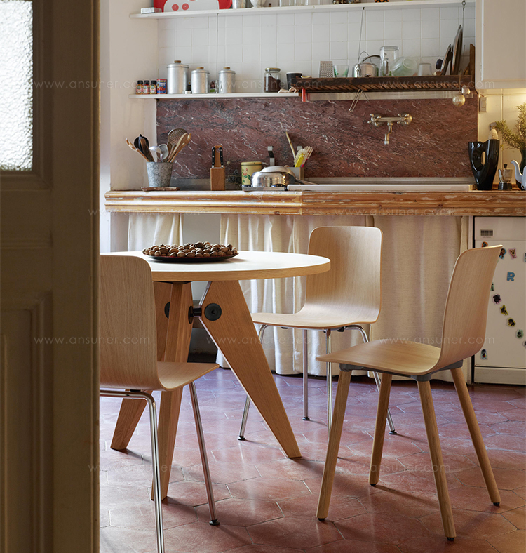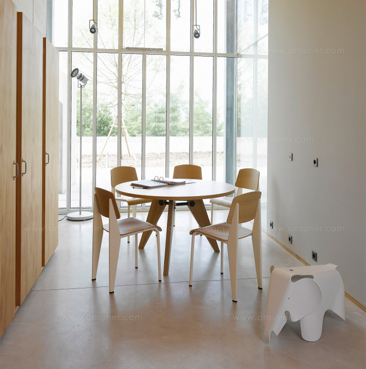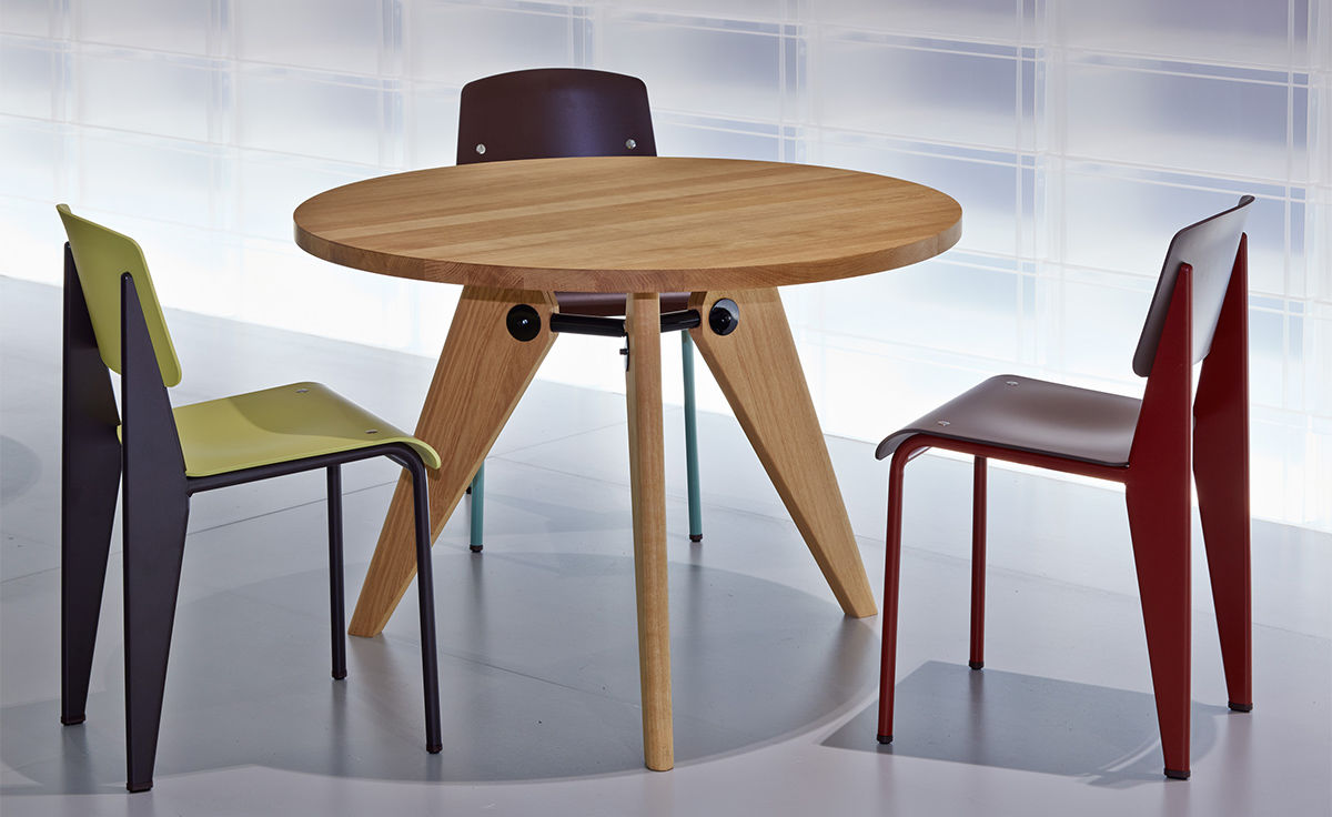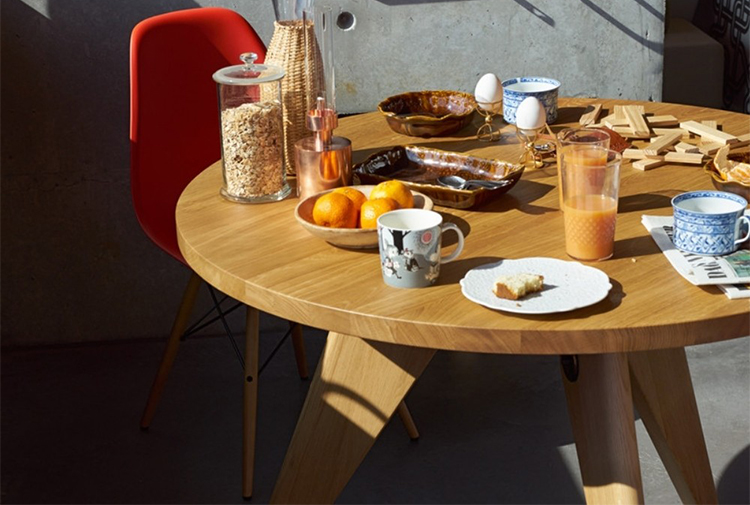 法国设计师兼工程师JeanProuvé于1949年为巴黎大学创建了圆形木制Guéridon桌子。它有两种不同尺寸和各种类型的优质木材。