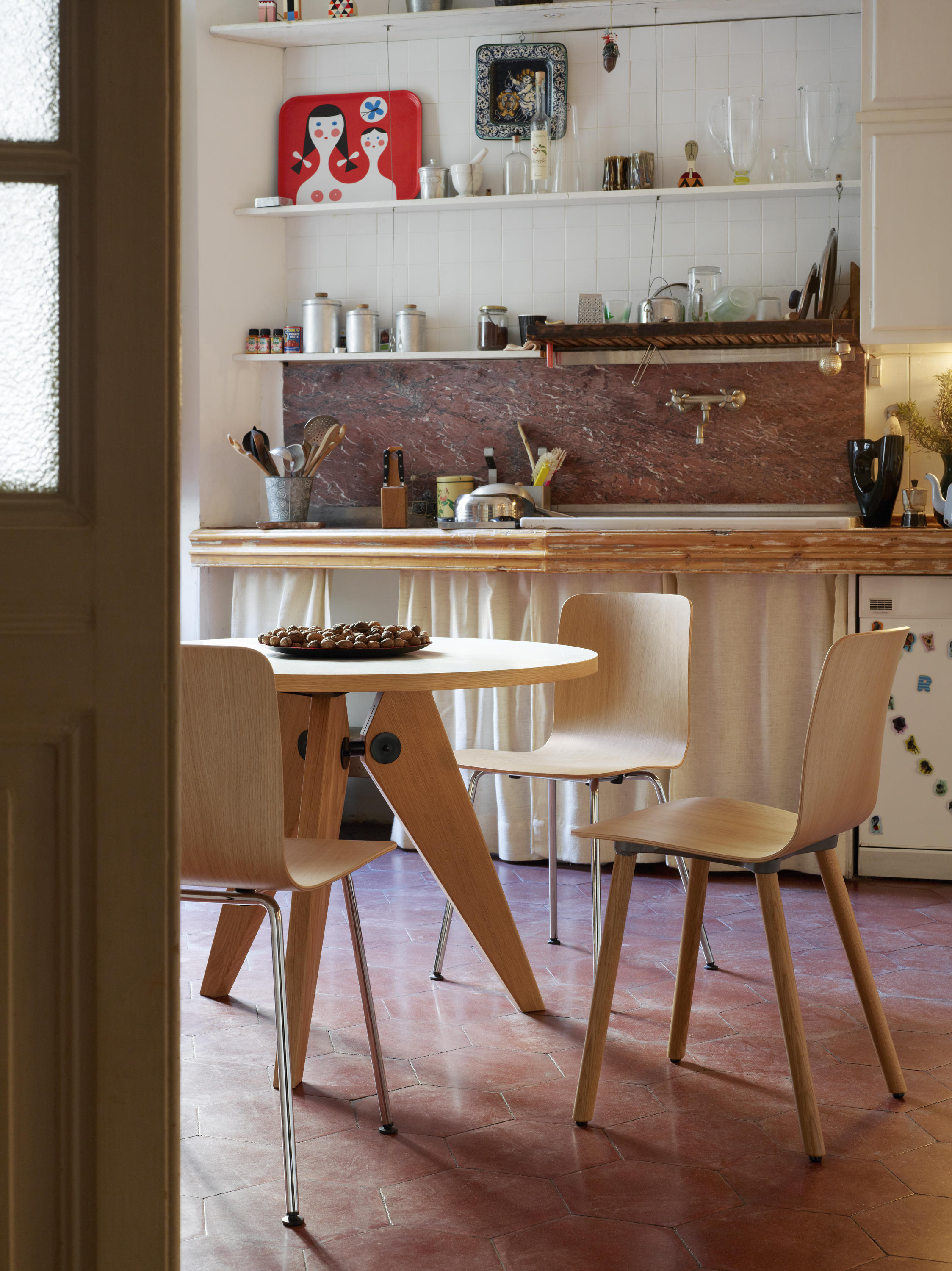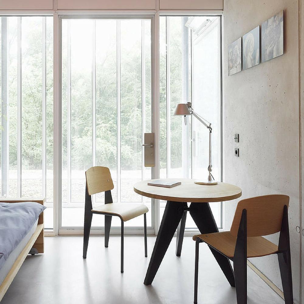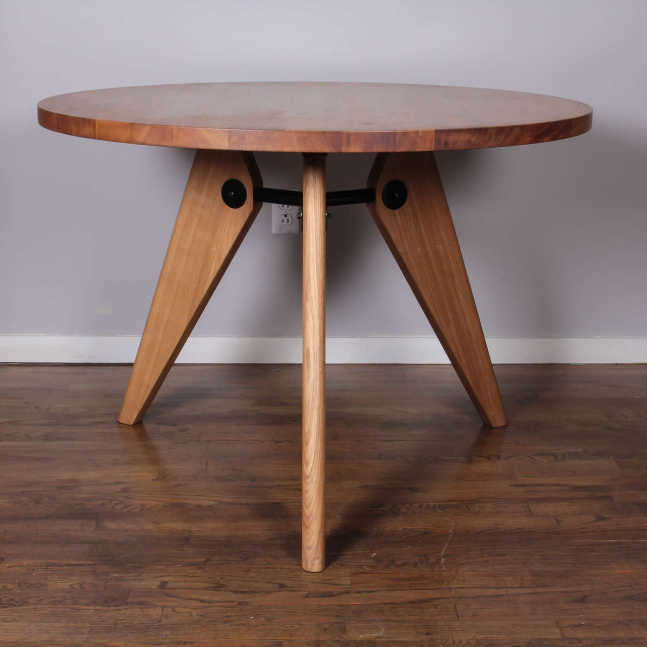 法国设计师兼工程师JeanProuvé于1949年为巴黎大学创建了圆形木制Guéridon桌子。它有两种不同尺寸和各种类型的优质木材。