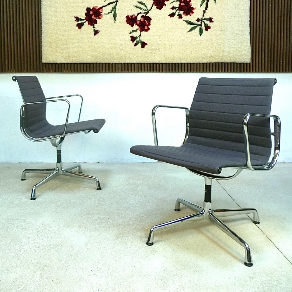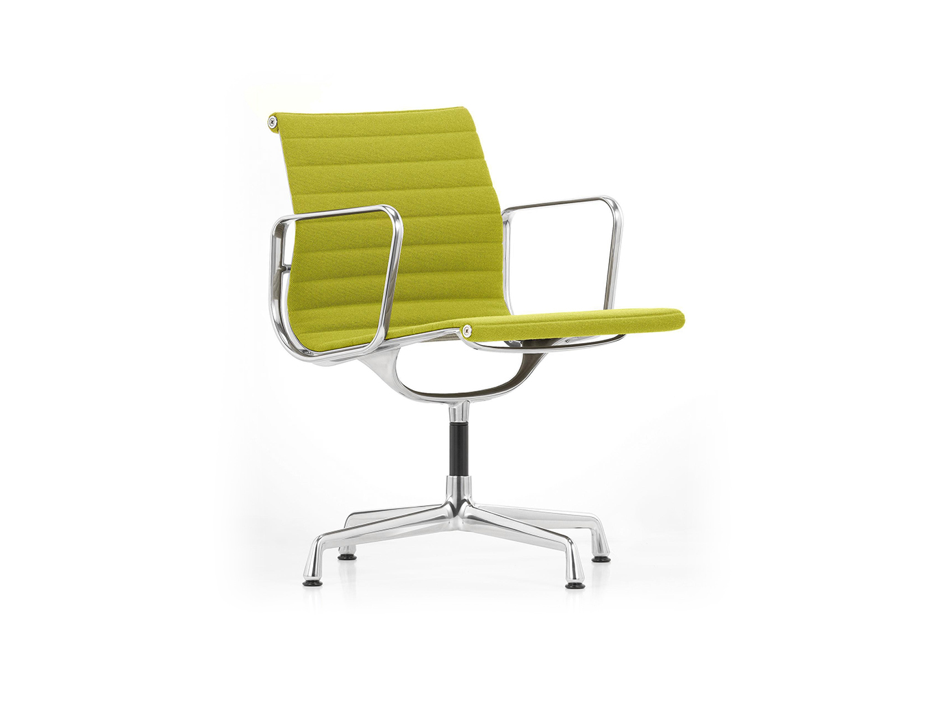Charles和Ray Eames的铝椅EA 101,EA 103和EA 104非常适合与桌子组合使用:与铝组的其他型号相比,它们更轻,更高,更窄。 由于室内装潢具有多种柔和鲜艳的色彩,因此很容易找到适合任何餐厅的完美椅子。 这三种型号的不同之处在于基座的类型 - 固定或旋转 - 以及是否存在臂。
