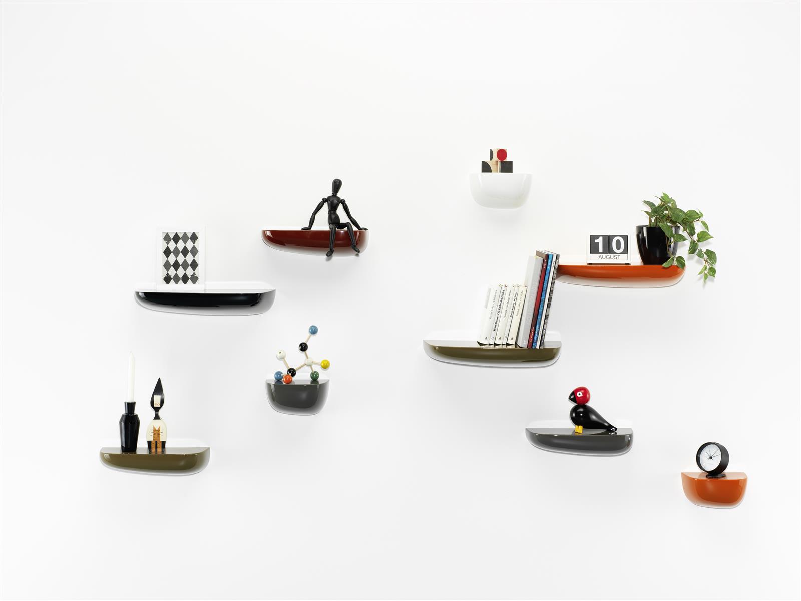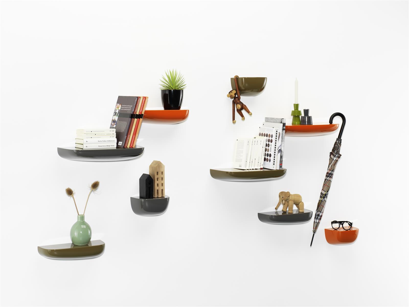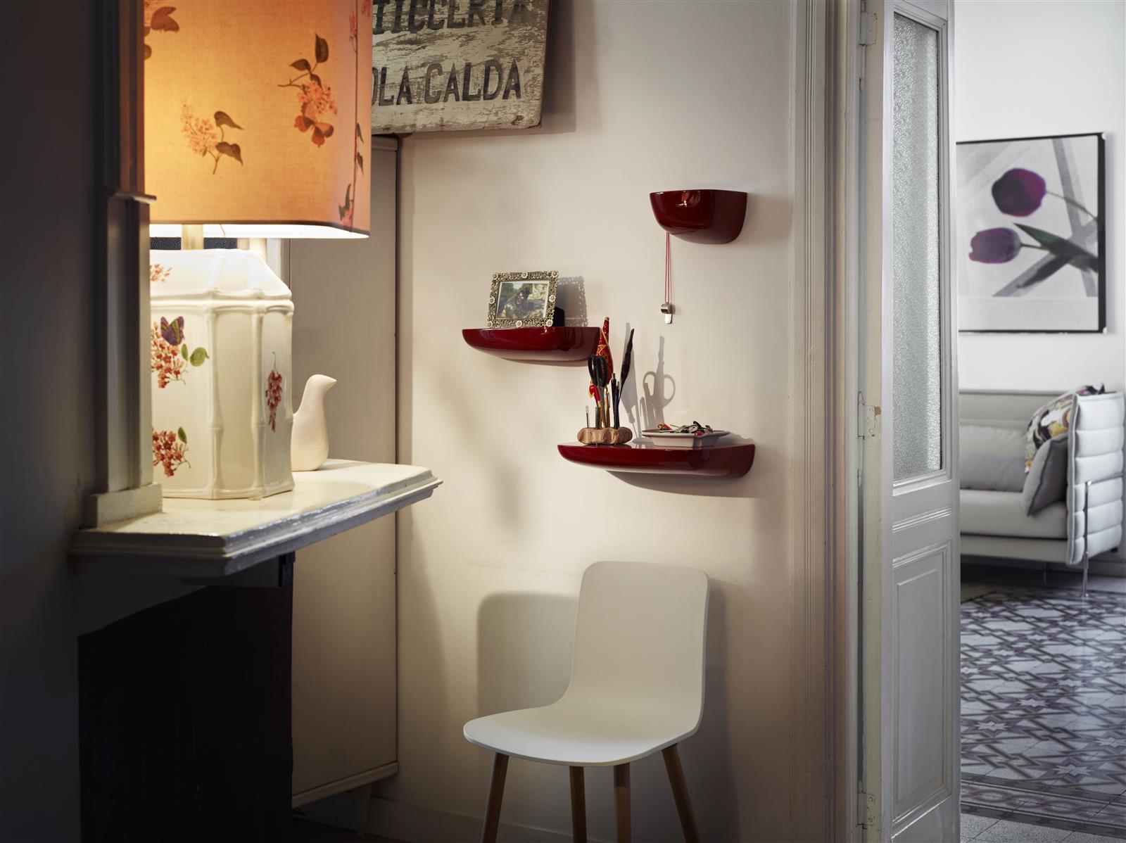 Ronan和Erwan Bouroullec的Corniches可以作为实用的储物壁架或装饰墙装置。 例如,它们可以用作前门旁边的钥匙架,可以将我们需要的所有东西放在浴室的指尖,或者用于少量物品的基座。 Corniches由各种形状,大小和颜色的高品质塑料制成。