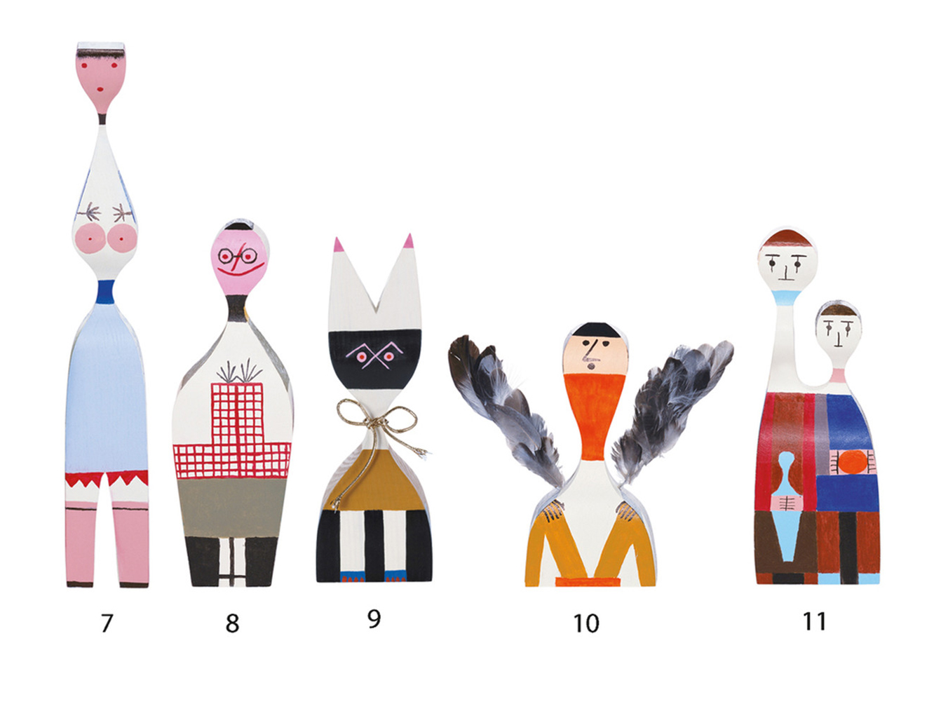 Alexander Girard的木制娃娃是一个代表人类和动物角色的大型木制家族。 吉拉德于1953年设计了他们作为圣达菲家中的装饰物品。 这些原件是维特拉设计博物馆馆藏的吉拉德庄园的一部分,作为当前重新版本的模型。 精确地复制到最后的细节,许多不同的木制娃娃今天仍然是手工制作和绘制的,就像Alexander Girard的复古作品一样。 即使它们之间的差异非常微小:每个木制人物都是独特的个性化产品,真正独一无二。