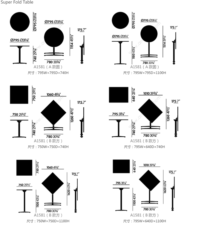 Super Fold Table 系列尺寸/示意图