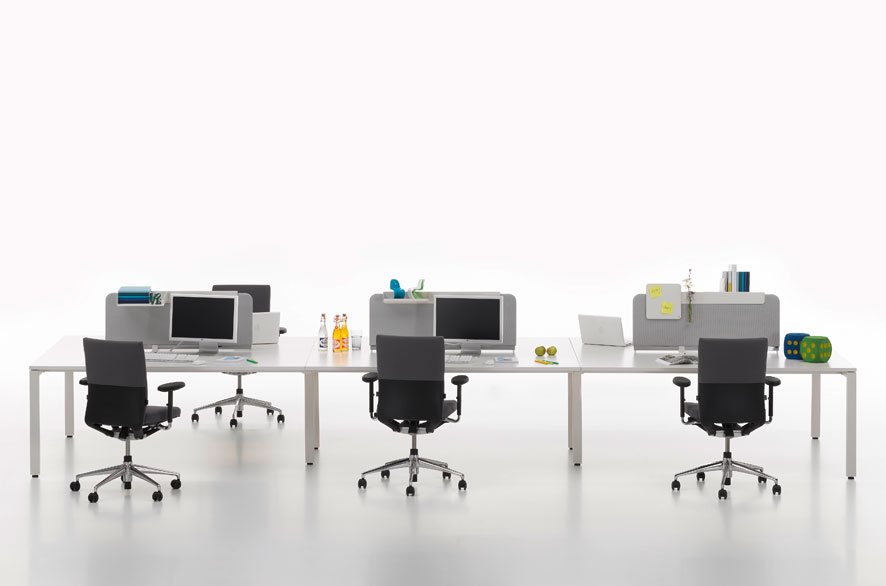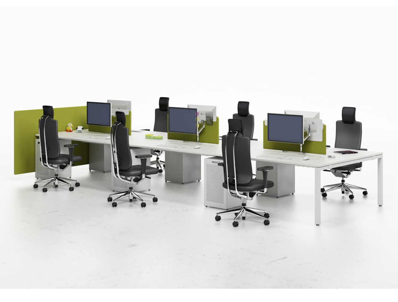 WorKit办公家具系统可用于为个人和团队创建多功能工作站。 设计巧妙,表格可轻松适应用户要求。 附加顶部允许会议配置以促进沟通,而中央和侧面屏幕将桌子分成与过程相关的工作站 - 适用于不同大小的个人壁龛或团队长椅。