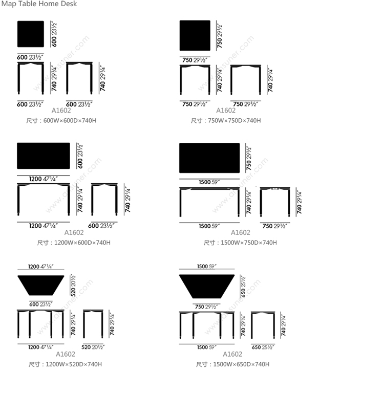 Map Table Home Desk 系列尺寸/示意图