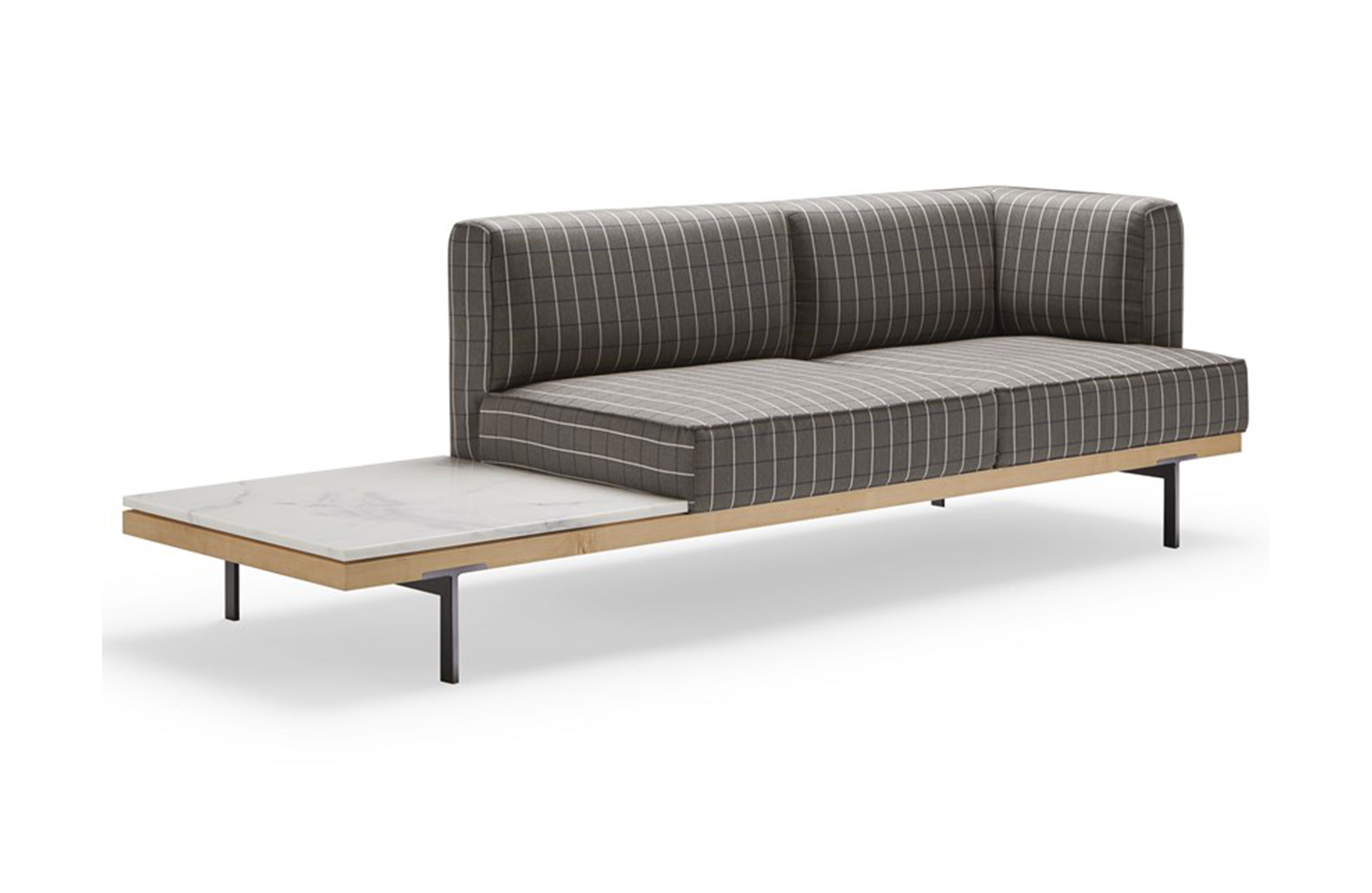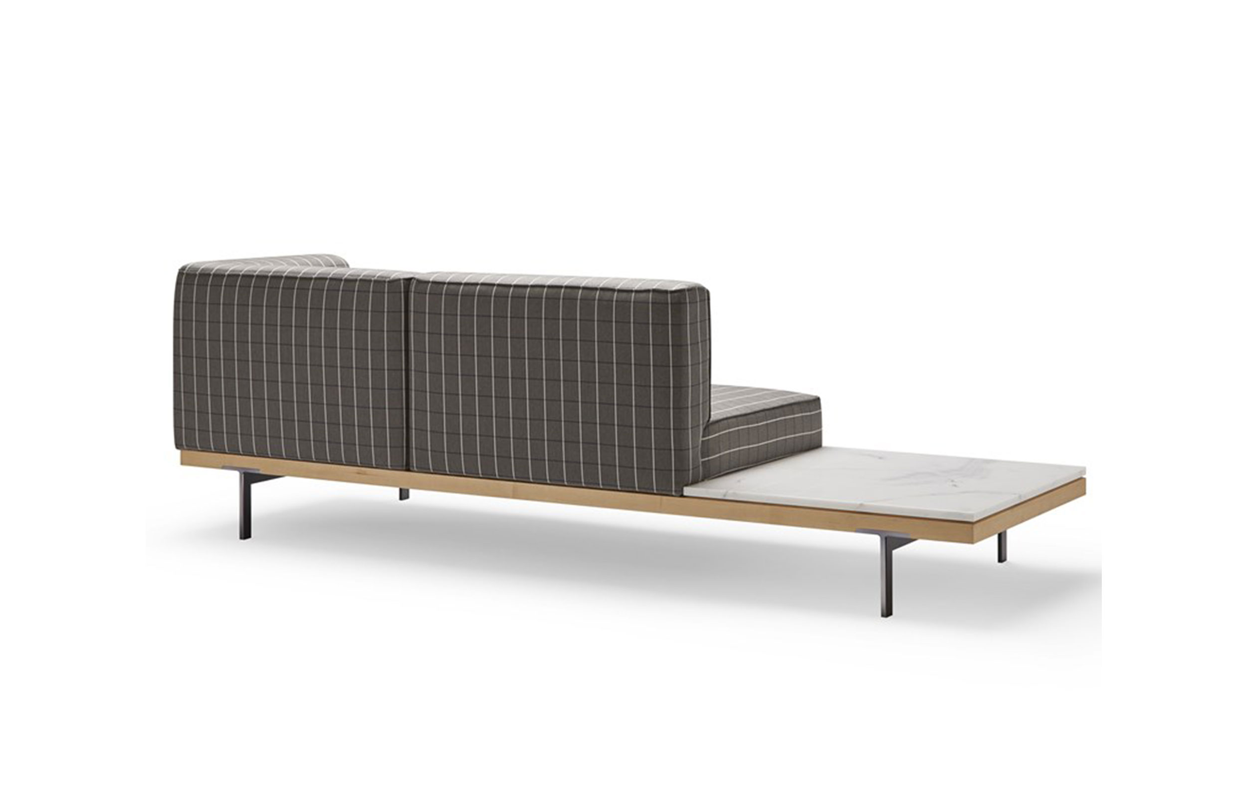 选择,以及不同的桌面。几乎雕塑的腿突出,由于它们插入下部木框架的方式。我们这里有一个多功能的系列,允许在相邻的长凳上以90o或180o的角度进行不同的配置。