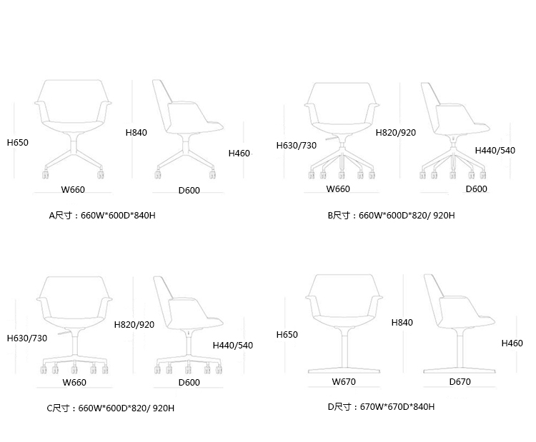 UNO 职员椅/会议椅 系列尺寸/示意图
