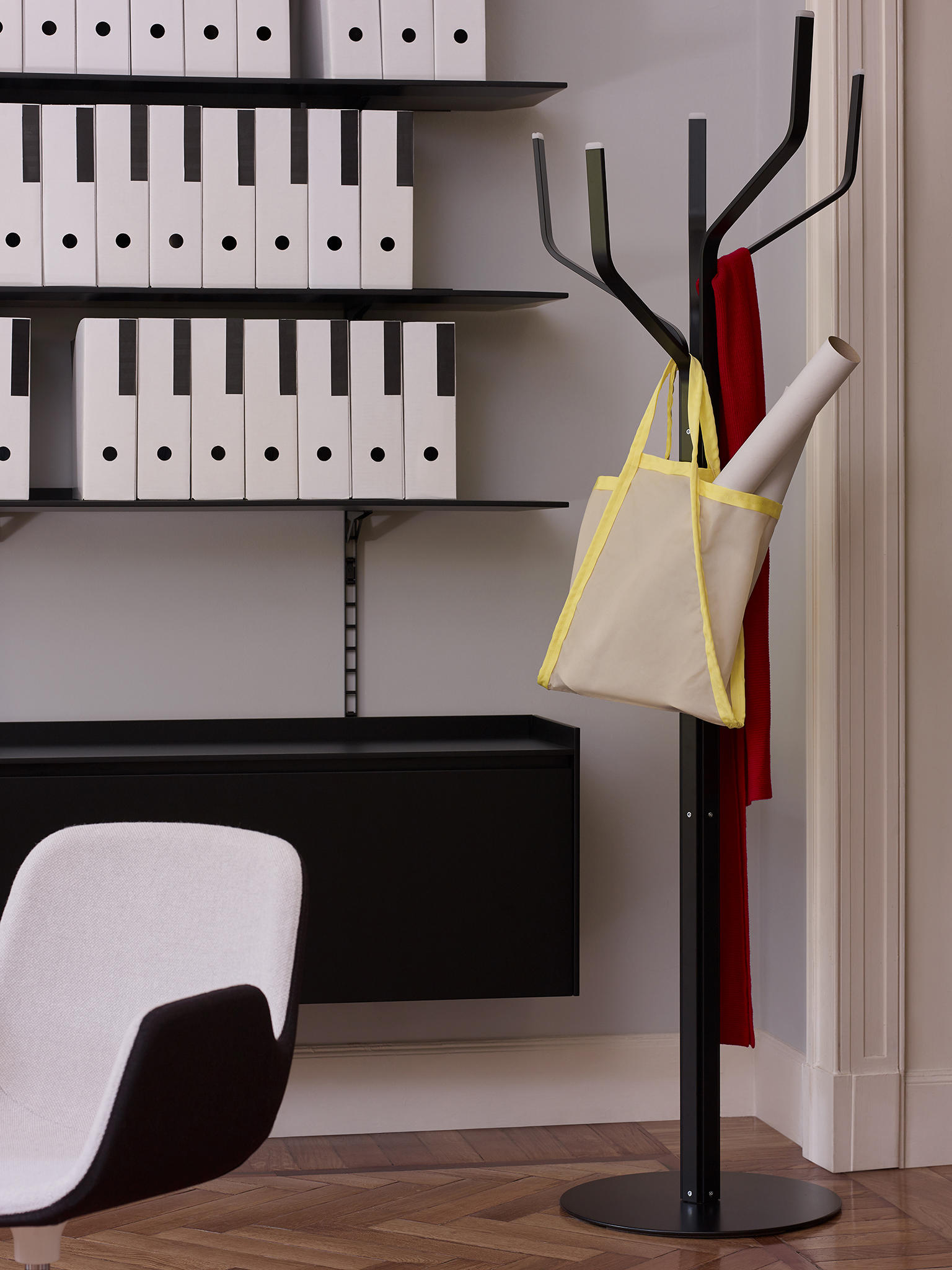 大自然小心翼翼地走进来,令人回想起它的形状之美。艾伯科大衣展台将其分支延伸到不同的高度,在任何环境中都增加了一种可识别的、明确无误的新触觉:办公室、家、休息室或餐厅。