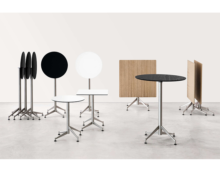 独特和谨慎的顶部可以倾斜到90°,塞尔茨小桌子满足任何情况下的需要。钢柱和偏移脚便于收纳和储存。桌面有三种不同的颜色:白色、黑色或木质。
