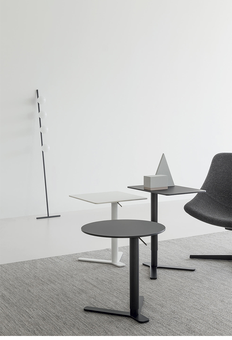 回顾胜利的标志,YO桌是成功的,因为它的多功能性,满足所有的需要作为一个顶部的工作和放松空间。由于它的偏离中心的底部和它的Y形腿,桌面,以各种几何形状,完美地对齐扶手椅和沙发。高度可调,它就像一张小桌子一样方便.