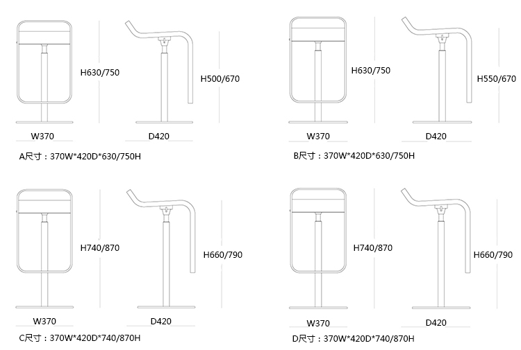 LEM 洽谈椅/餐椅 系列尺寸/示意图