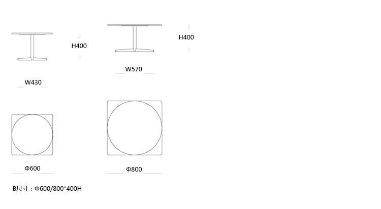 AUKI 茶几/边几 系列尺寸/示意图