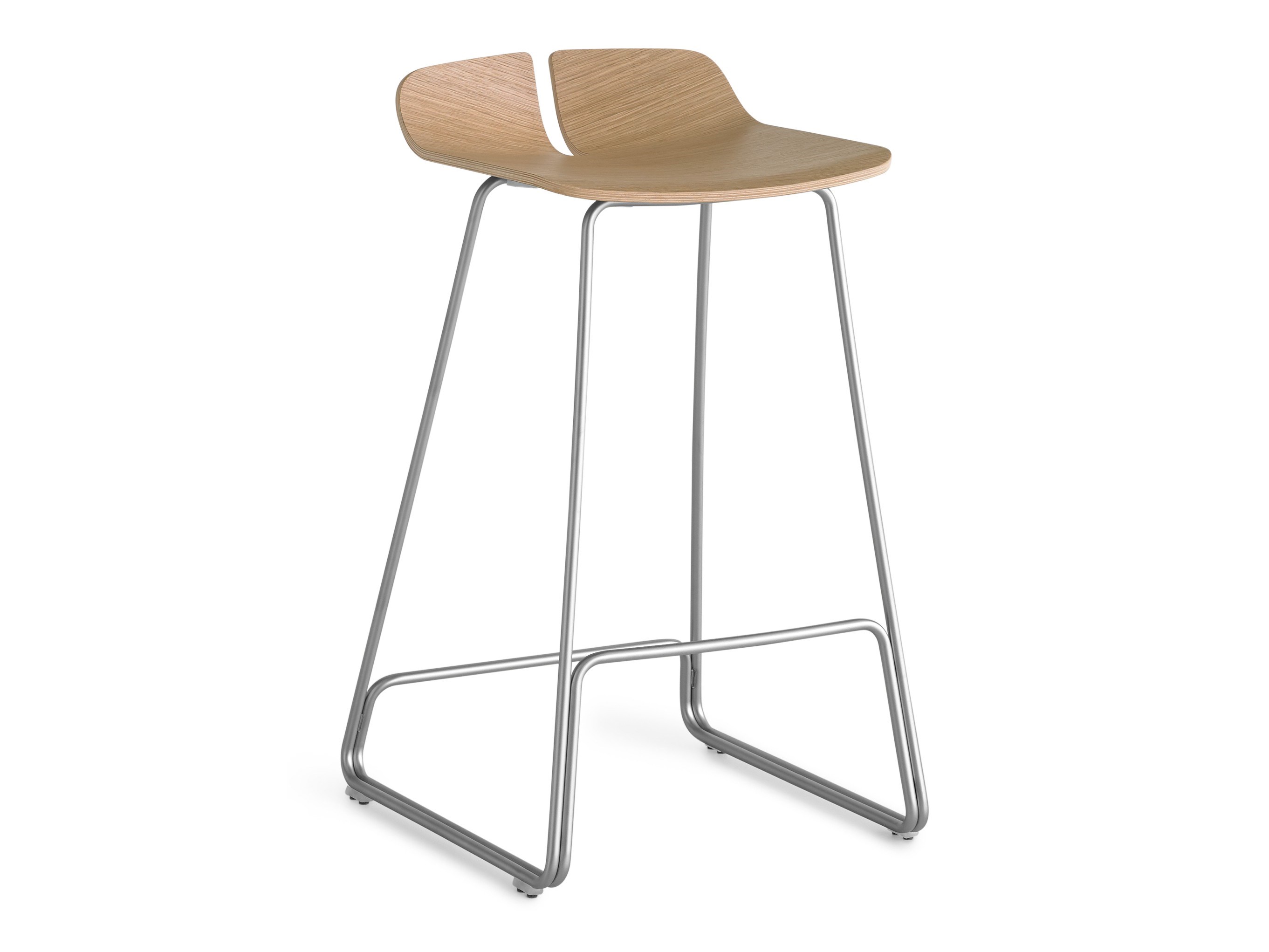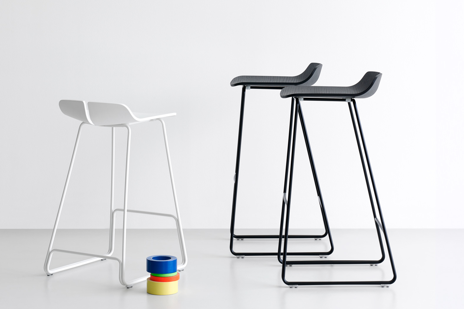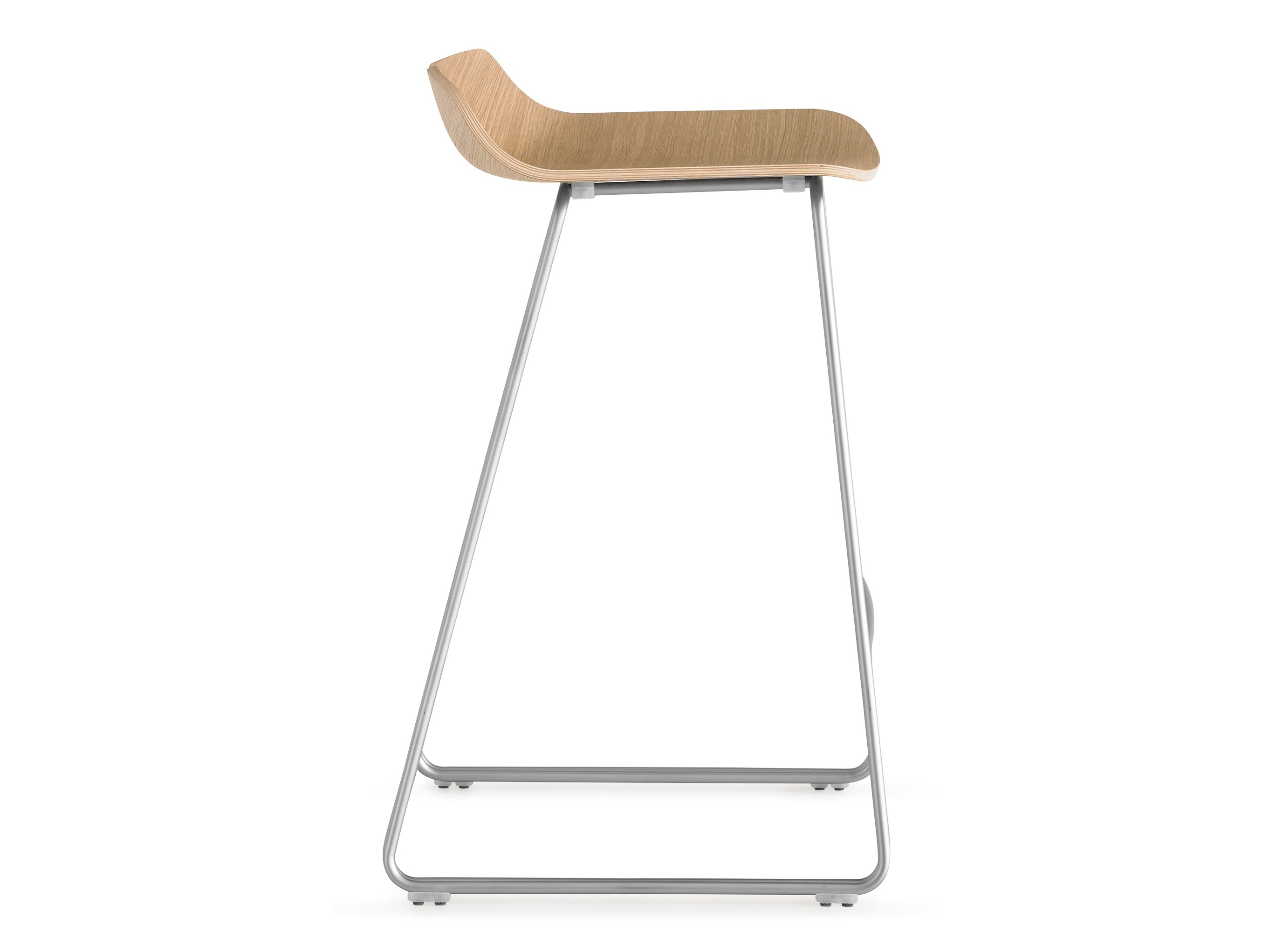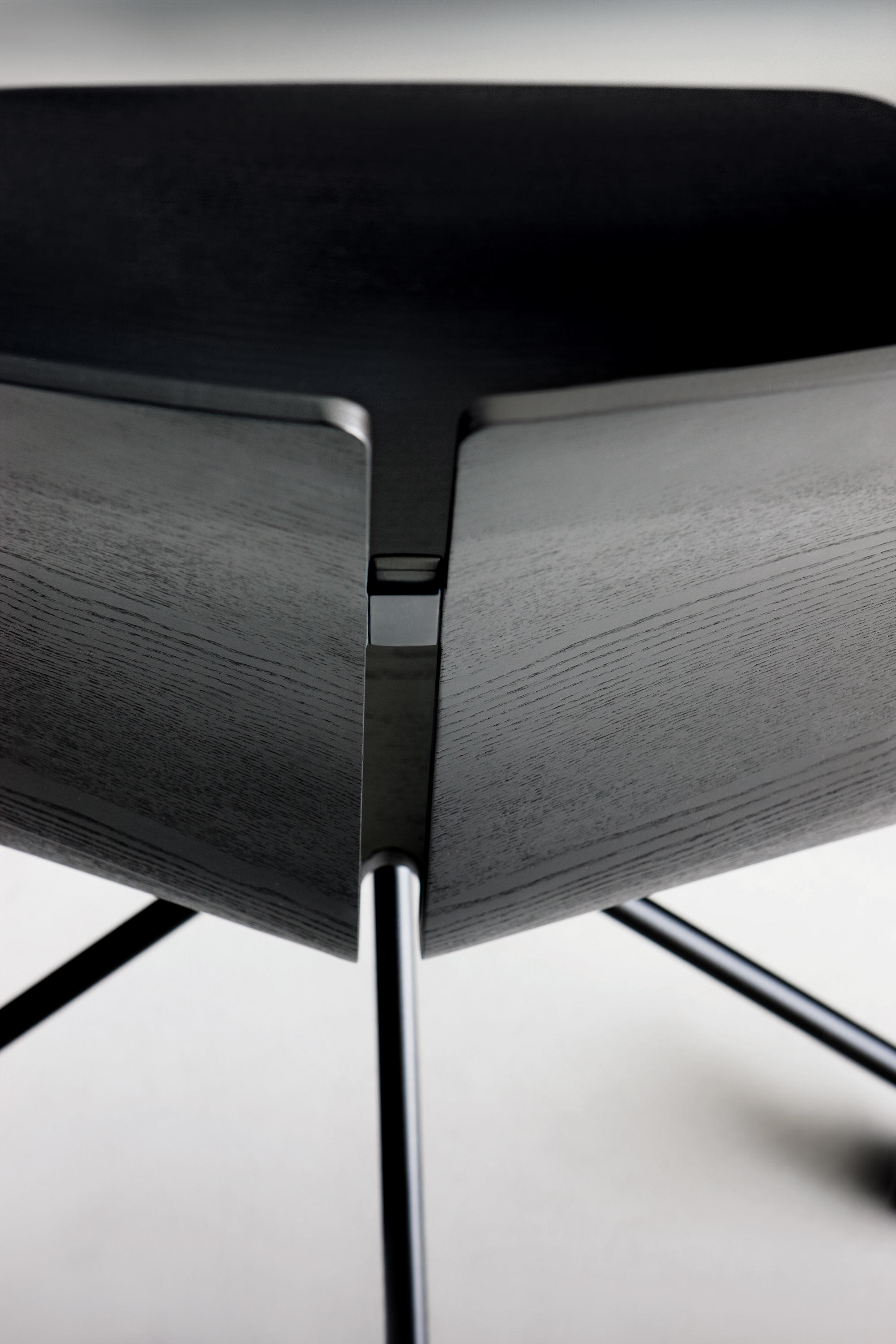 一个很小的间隙,一条线的中断,和连接的凳子形状。它是轻的,就像它狭窄的金属底座和木质座椅所暗示的那样,轻轻弯曲形成靠背。在自然的木材版本,纹理加强了柔软的轮廓和拥抱像一个非常新鲜的叶子,突出其结构的轻盈性。