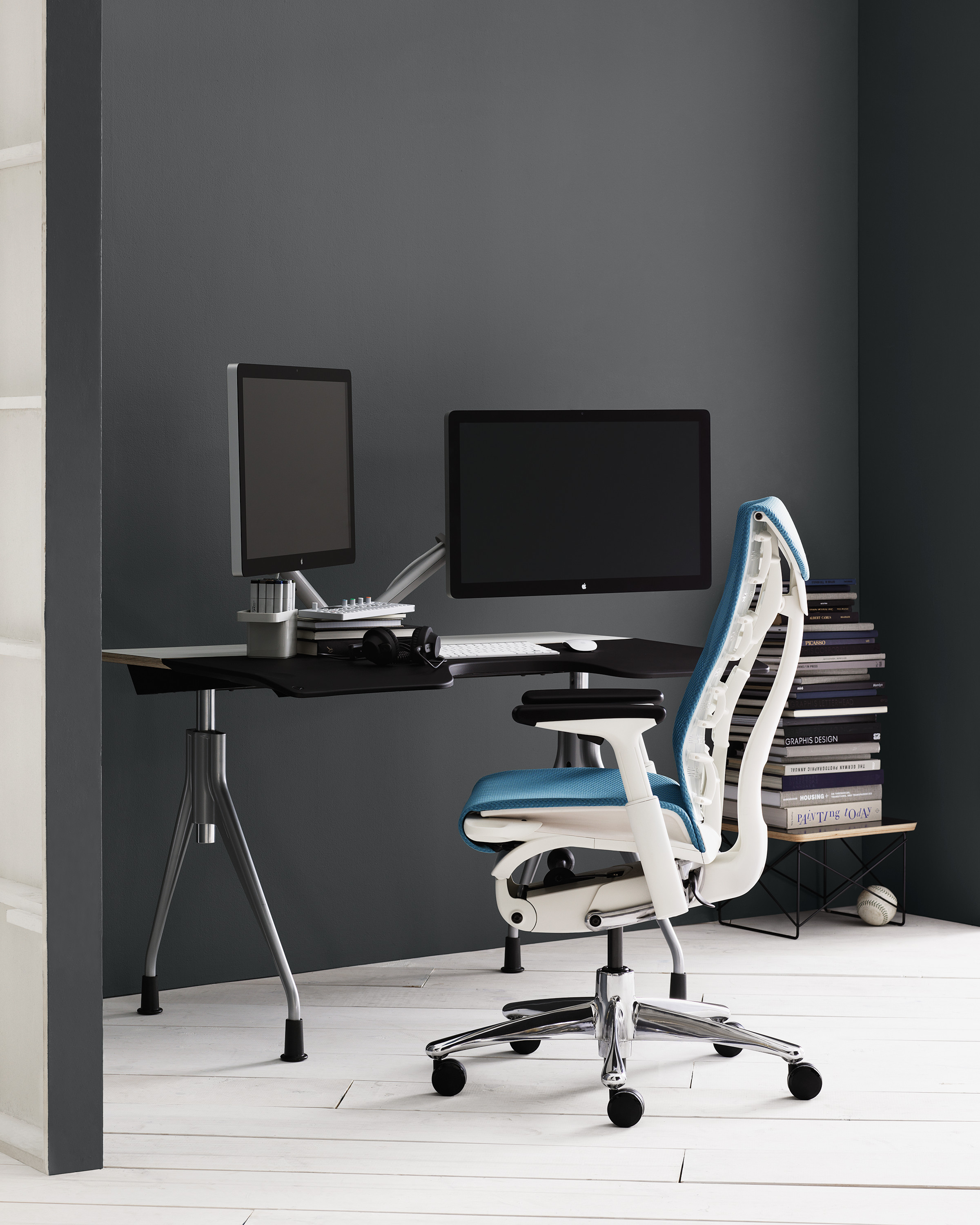 Embody的概念从一个业界未能克服的问题开始:人与科技之间缺少的实质和谐。我们身体的构造本来就是需要活动的。可现今人们长时间使用电子设备,手指以外的部位少有活动,而致使身体僵硬和疲惫。透过Embody,设计师Bill Stumpf和Jeff Weber着手解决这一问题。