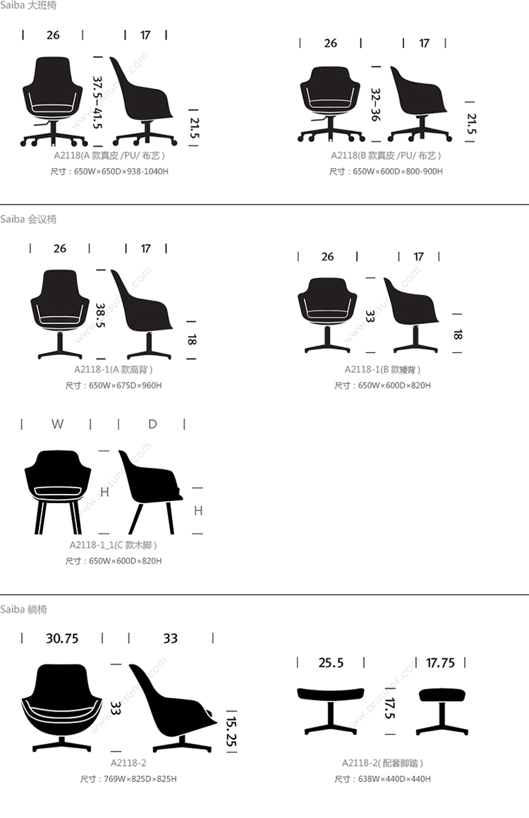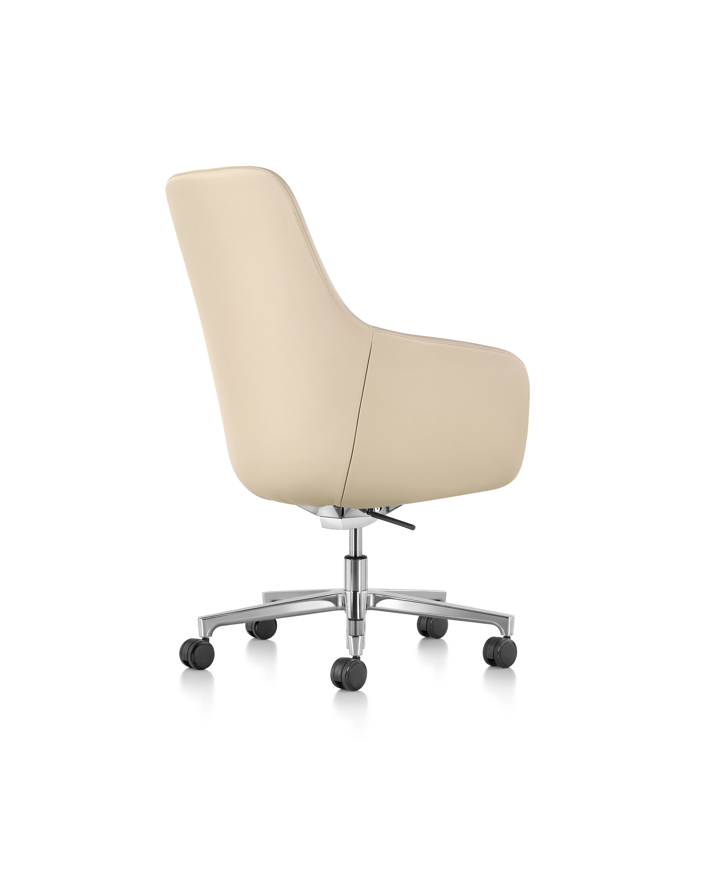 Saiba有中背款和高背款,分别是带有四星底座和脚垫的固定高度休闲躺椅,或者带有五星底座和滚轮的可调整高度的主管椅。毫无瑕疵的制作配以色调精巧的织物和抛光或黑色底座,让这款座椅成为了优雅典范,经久不衰。
