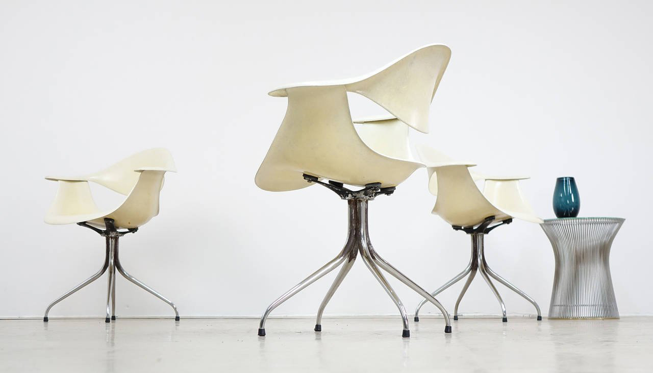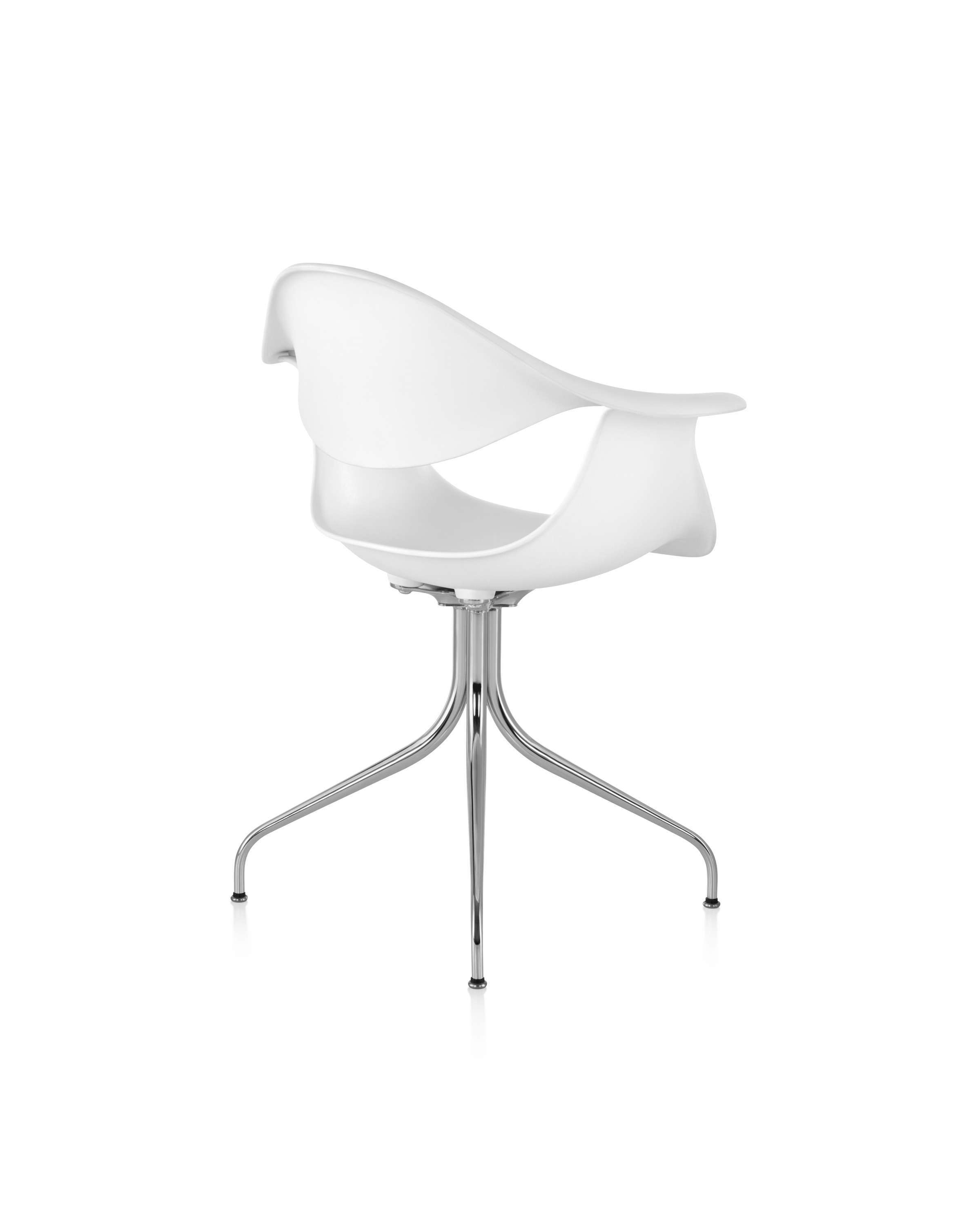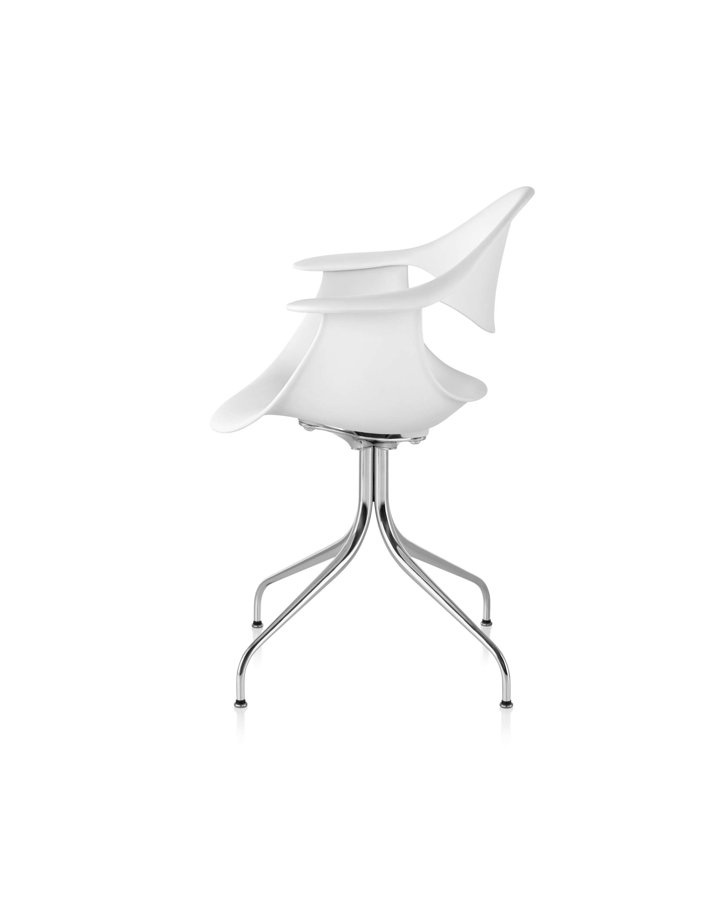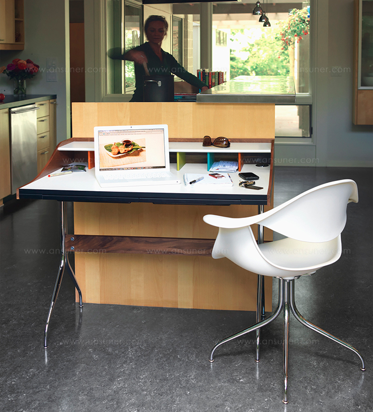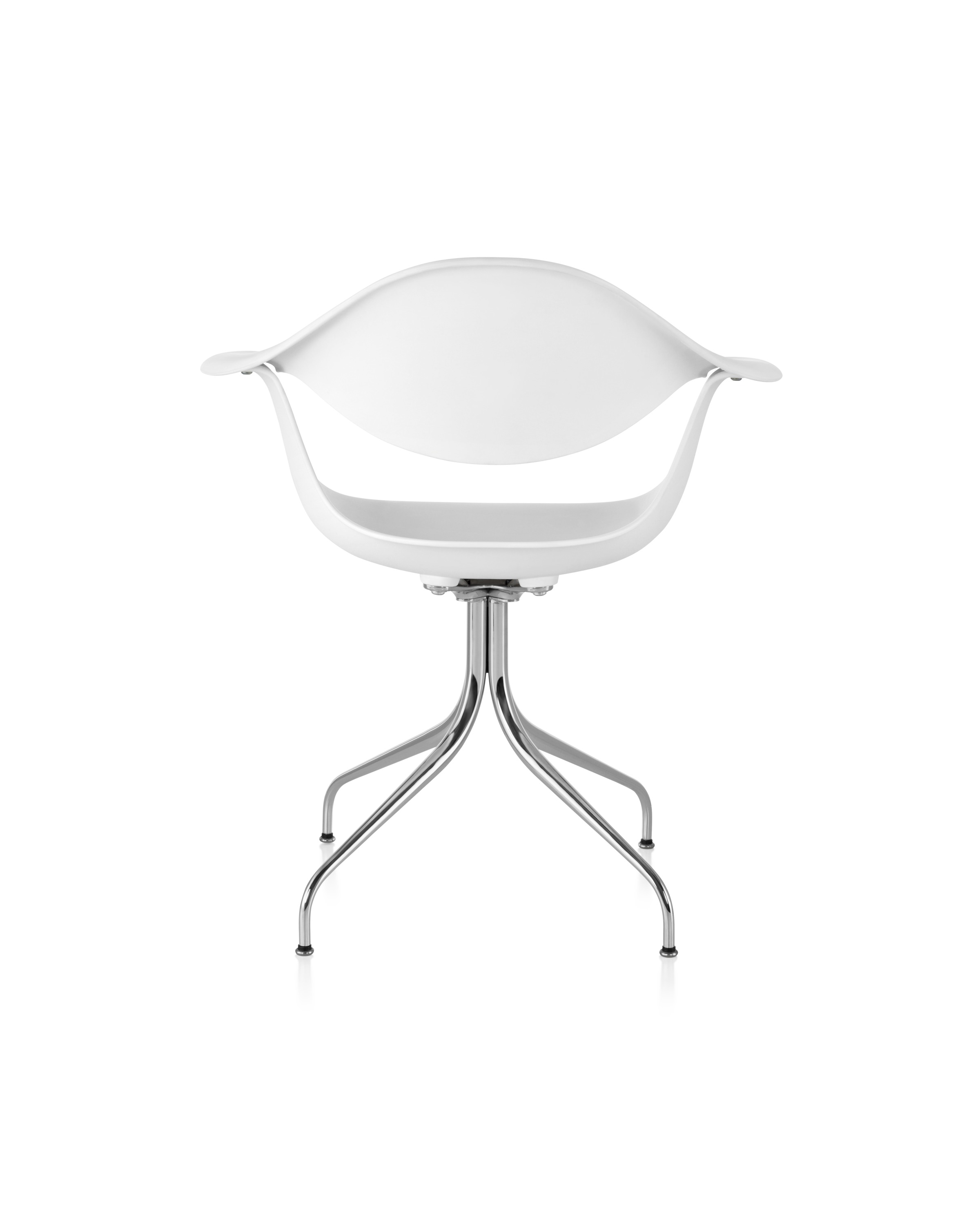 这款扶手椅所属系列的灵感来自George Nelson对创作一款具有雕刻感椅腿家具的渴望,并且他对椅腿的形状有非常具体的想法。George Nelson希望底座具有优雅的曲线,采用金属材料制造,工业加工成型,并且采用预处理饰面,同时要容易组装和分解,以方便装运,并且价格更便宜。型锻是用压力细化并弯曲金属管的过程。实践证明这是制造椅腿的绝好工艺,而Nelson也是用这种工艺为自己的独特设计命名。 对于椅座壳,Nelson将单独的椅座和靠背组合在一起,形成雕刻般的形状,以贴合人体曲线。椅背和椅身之间的缝隙可以避免产生过高的热量。宽阔平坦的扶手可以让手臂处于放松状态。放置在办公桌或是用餐区或会议室的桌子旁边,这款永恒时尚的座椅能够满足当今的需要,如同1958年刚刚推出时一样。