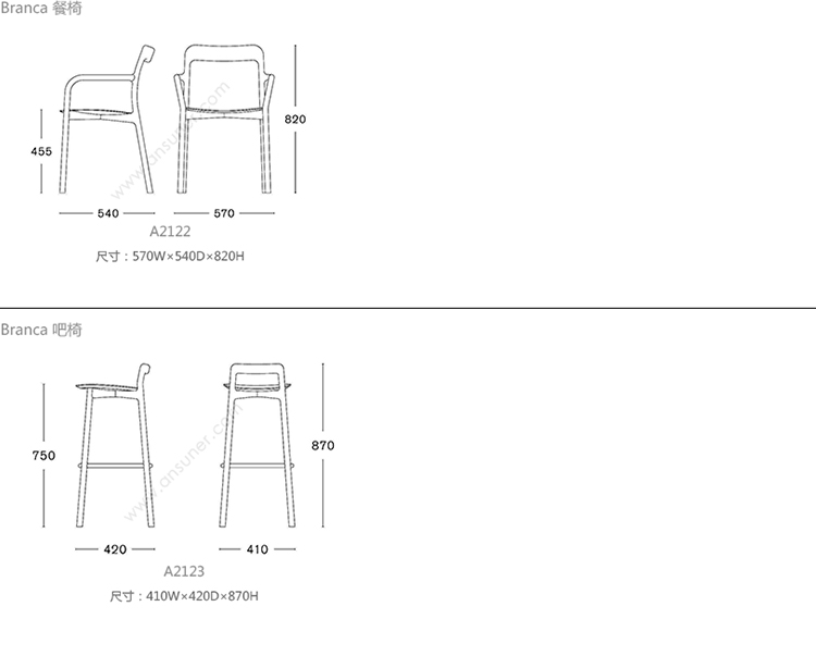 Branca 系列尺寸/示意图