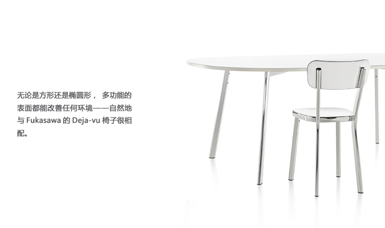 这张由深泽直人(Naoto Fukasawa)设计的简单而又美观的设计,使它成为一个轻松的聚会场所,可以用来吃饭、工作或玩耍。无论是方形还是椭圆形,多功能的表面都能改善任何环境——自然地与Fukasawa的Deja-vu椅子很相配。