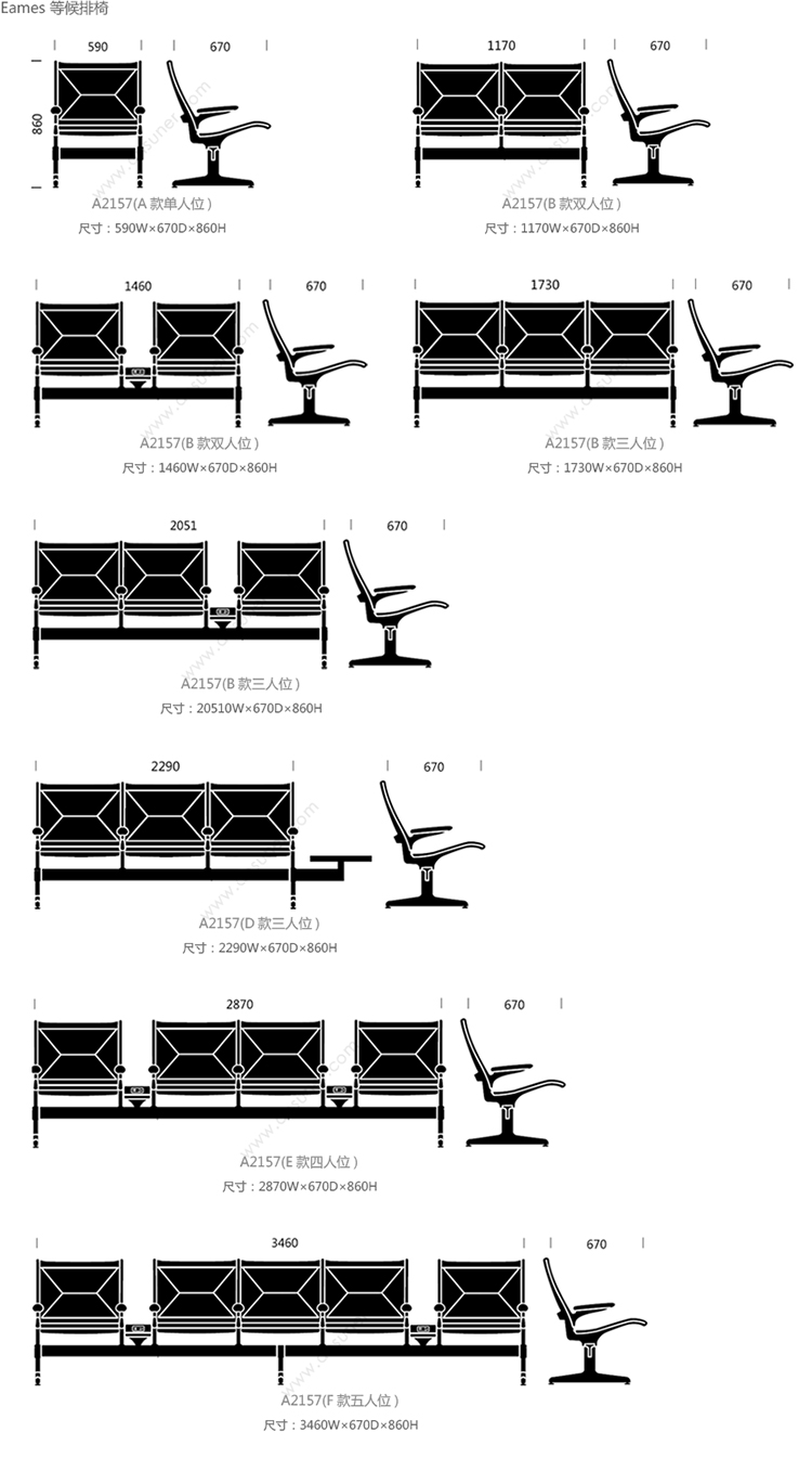 Eames 等候排椅 细节/功能展示